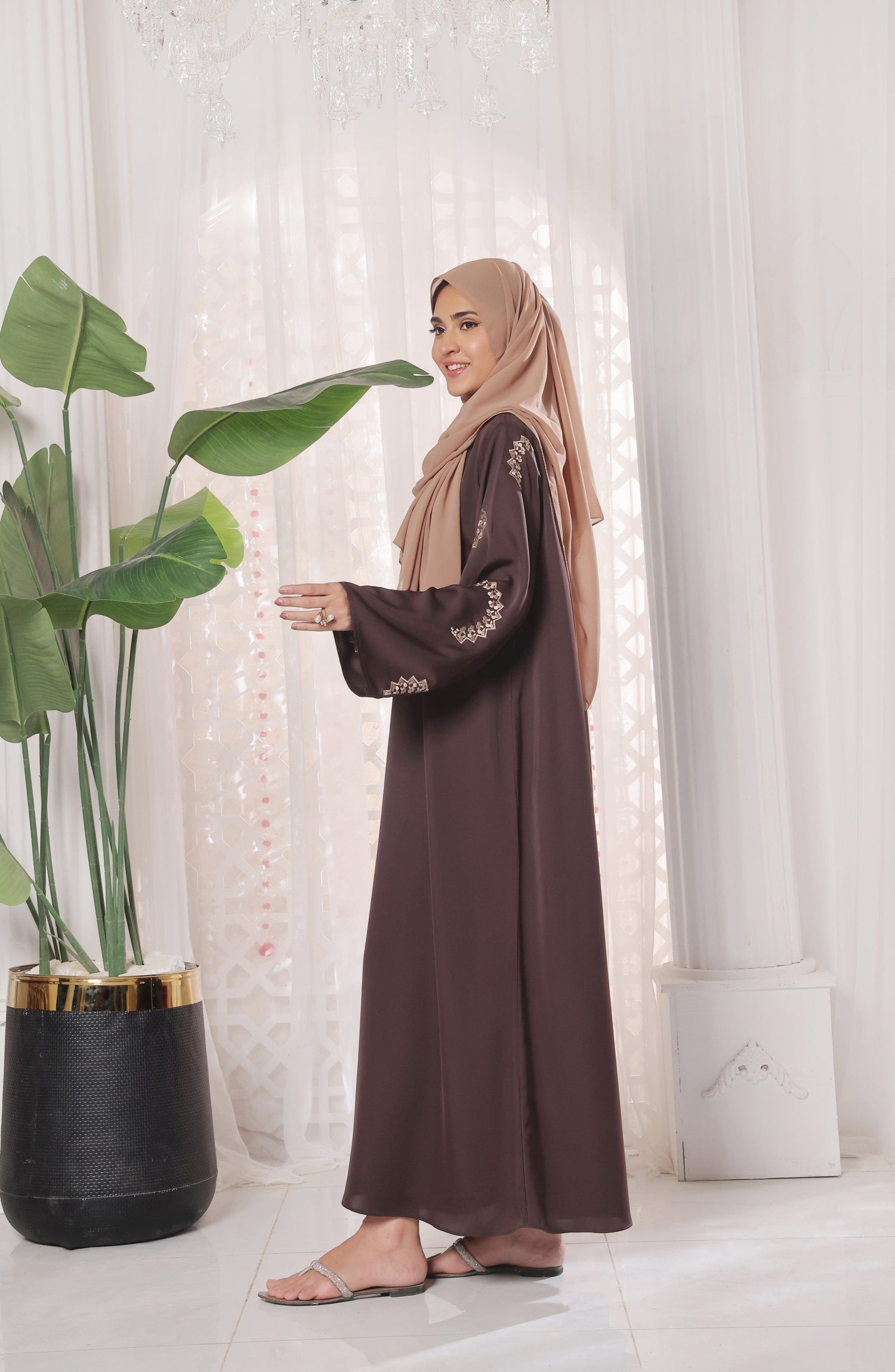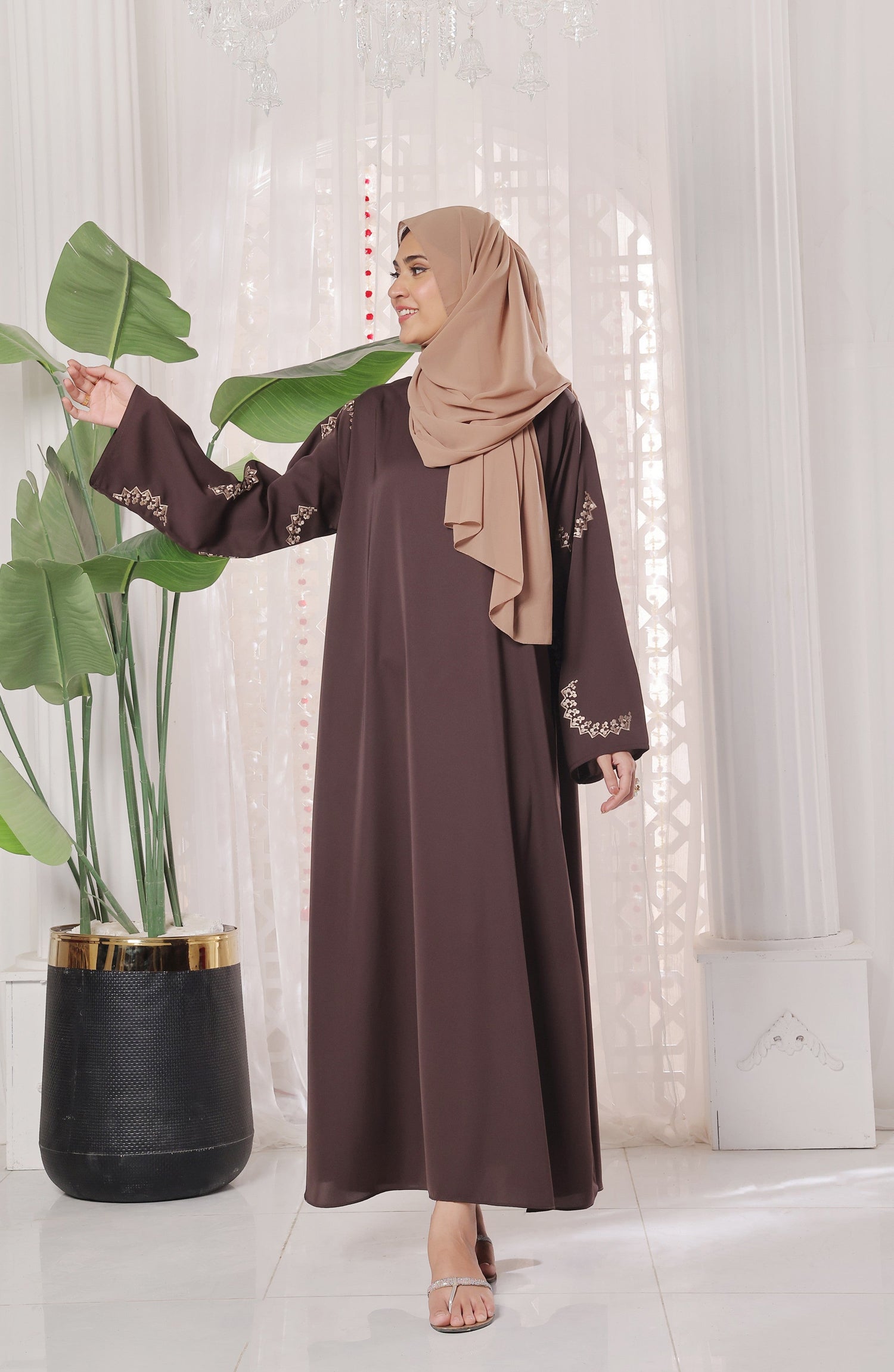 Maxi Silhouette Premium Nidha Abaya - Celeste Brown
