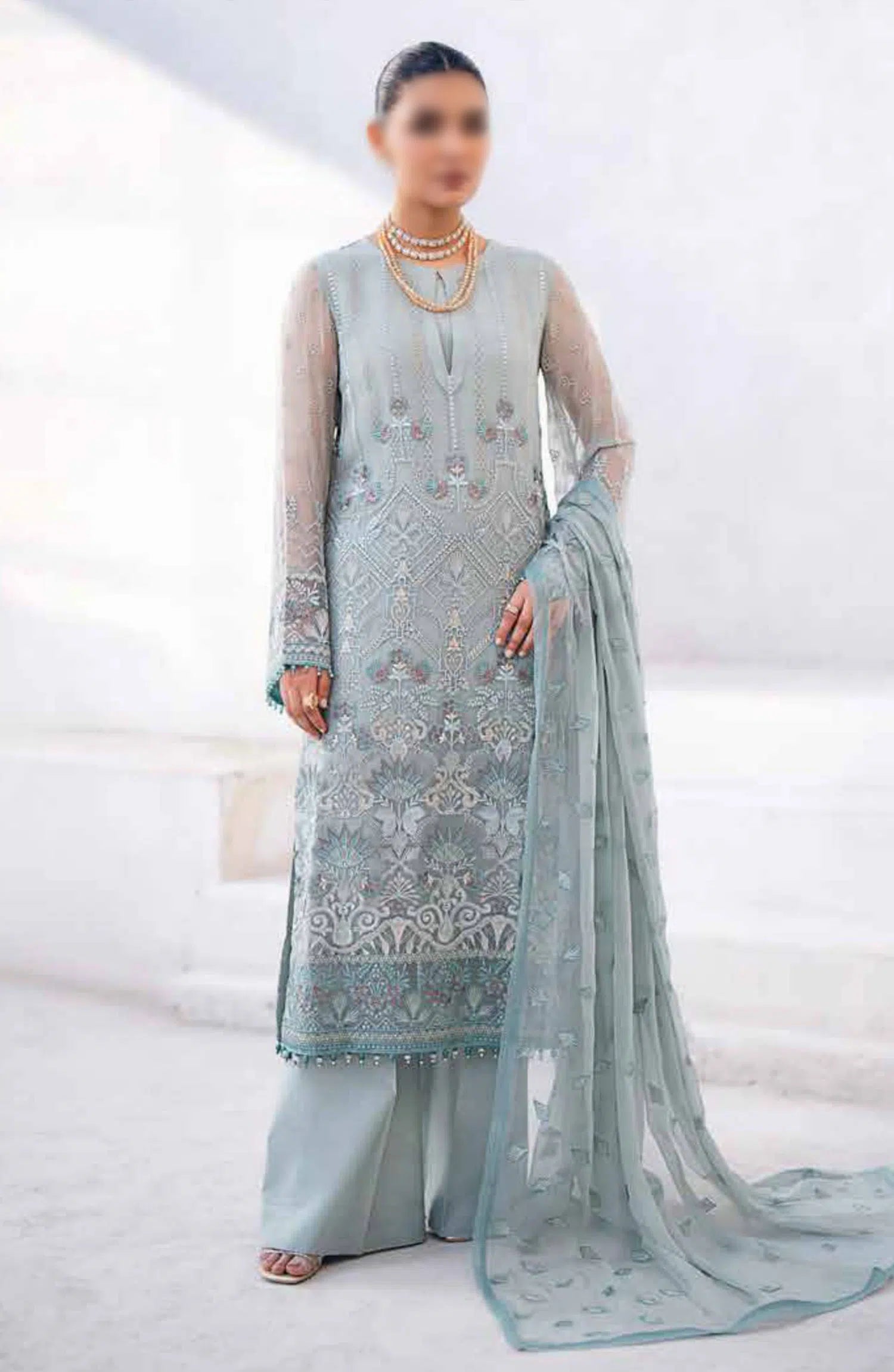The standard style comes as a long-sleeved kameez with dupatta and trousershawlar.