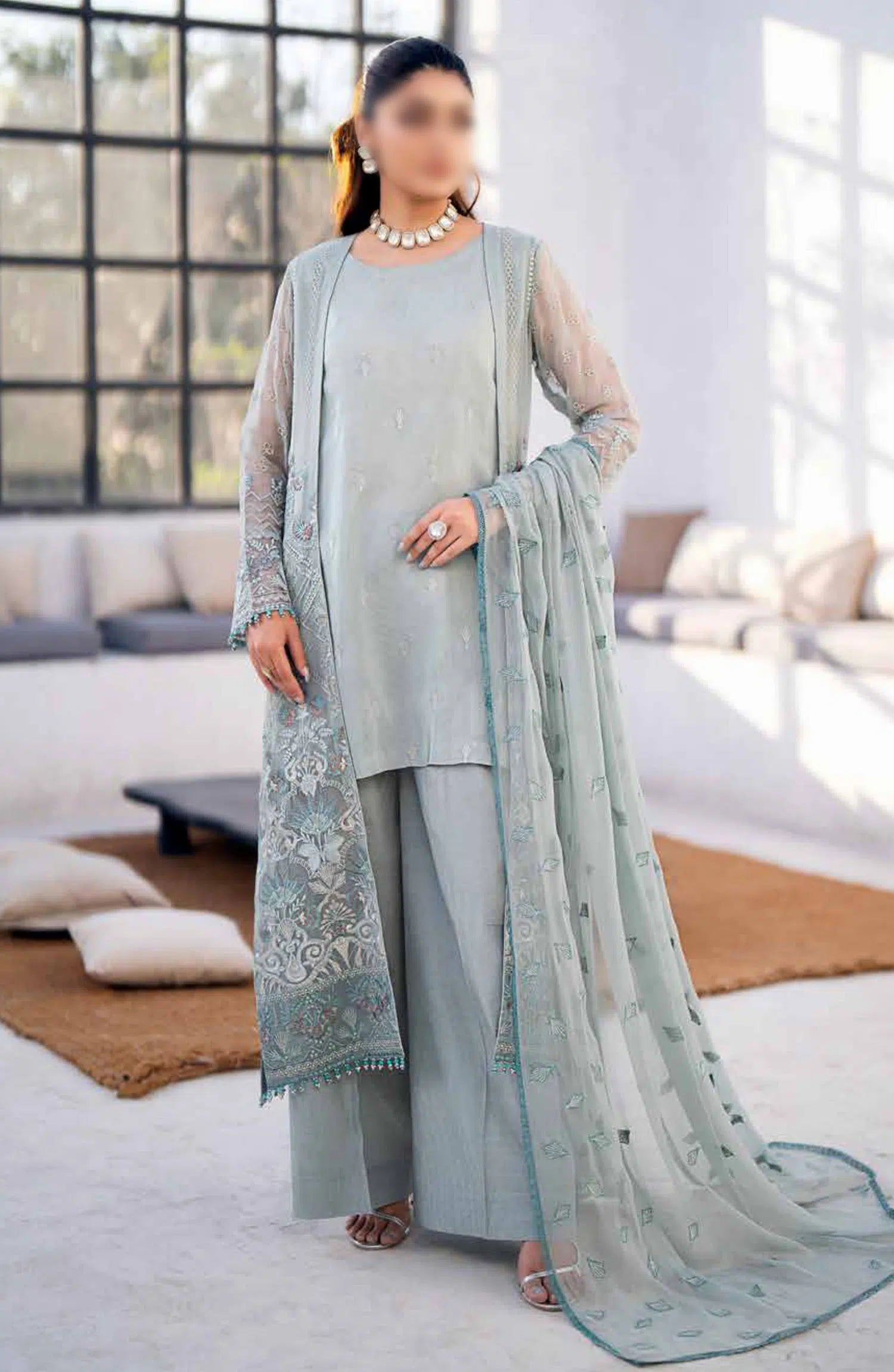 Embroidered Chiffon Front