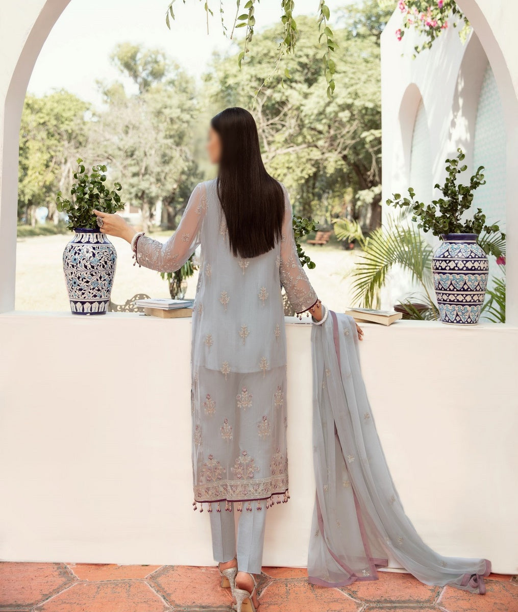 The standard style comes as a long-sleeved kameez with dupatta and trouser/shalwar.