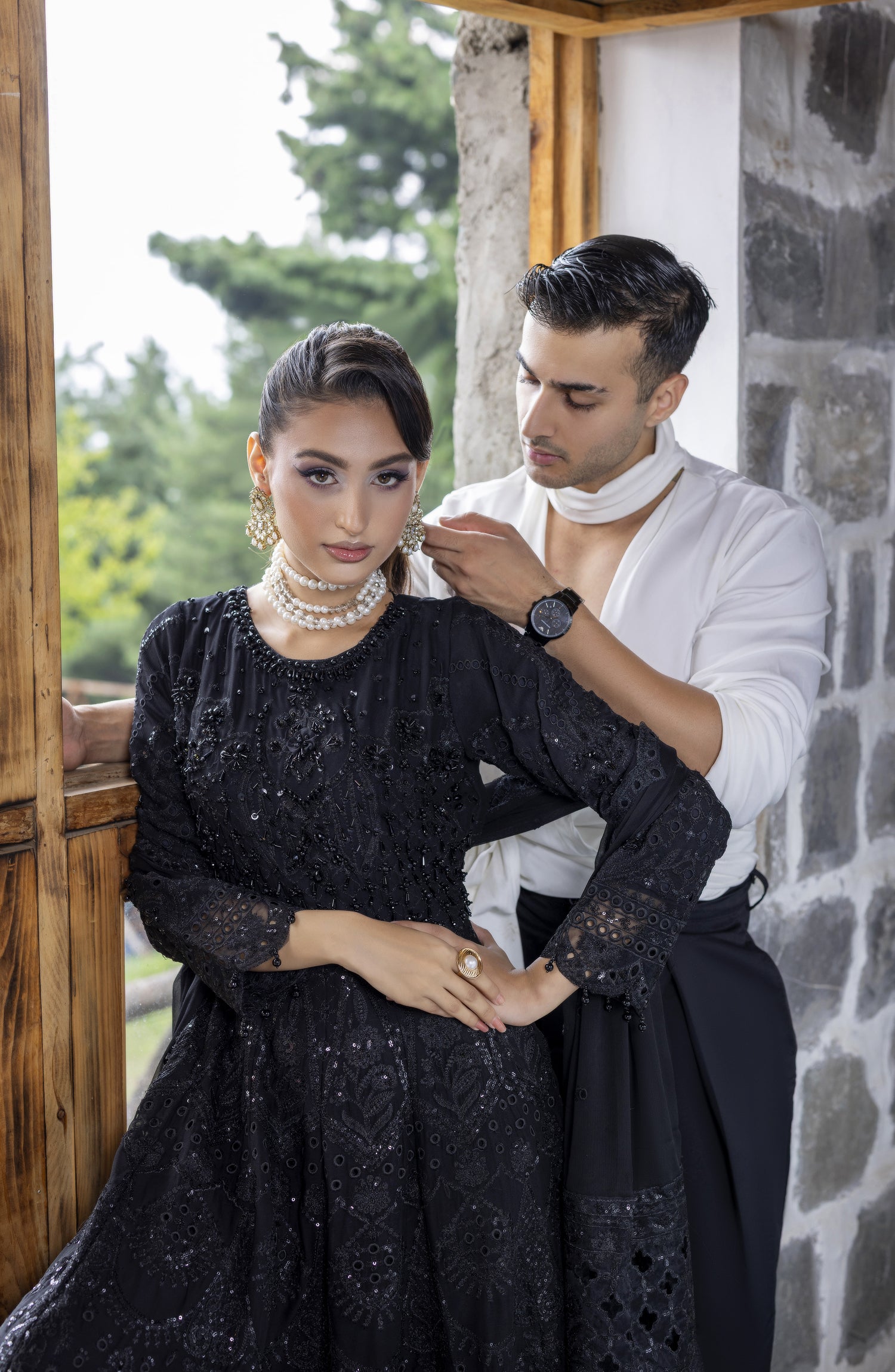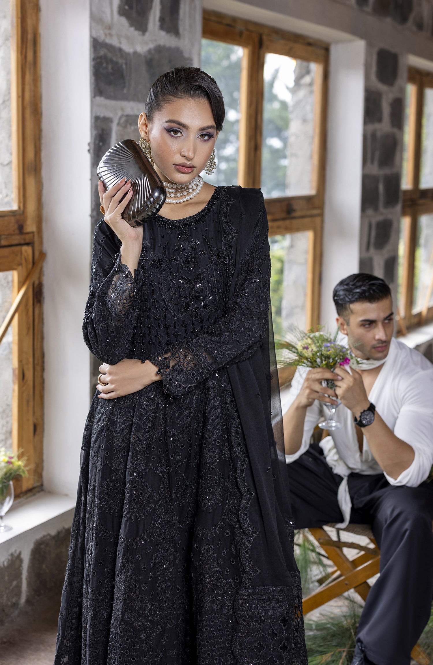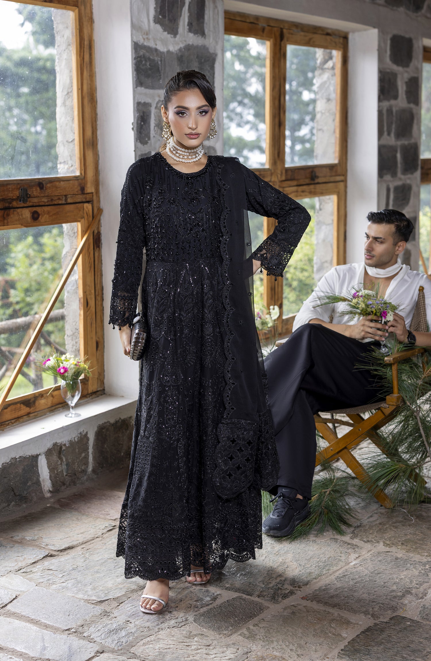 Kumari by Diara Couture Embroidered Organza Stitched 3 Piece Suit - ELAISA - DC25KMR - Black - Luxury Collection