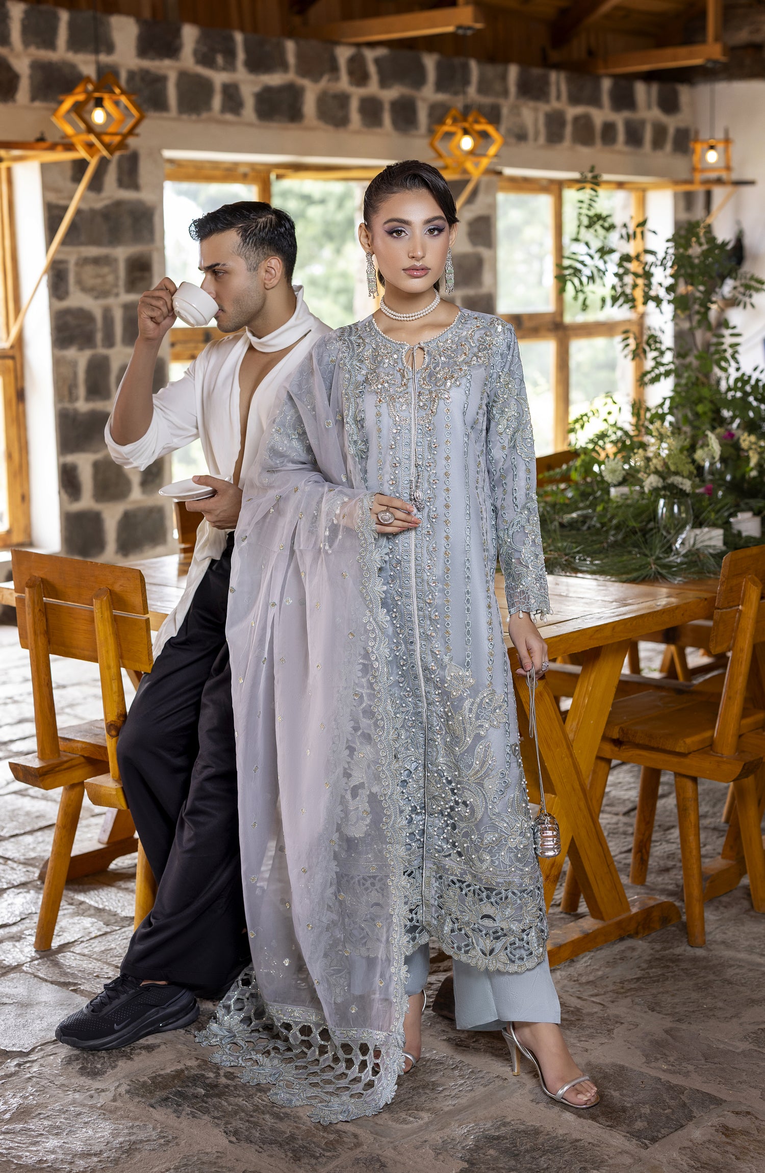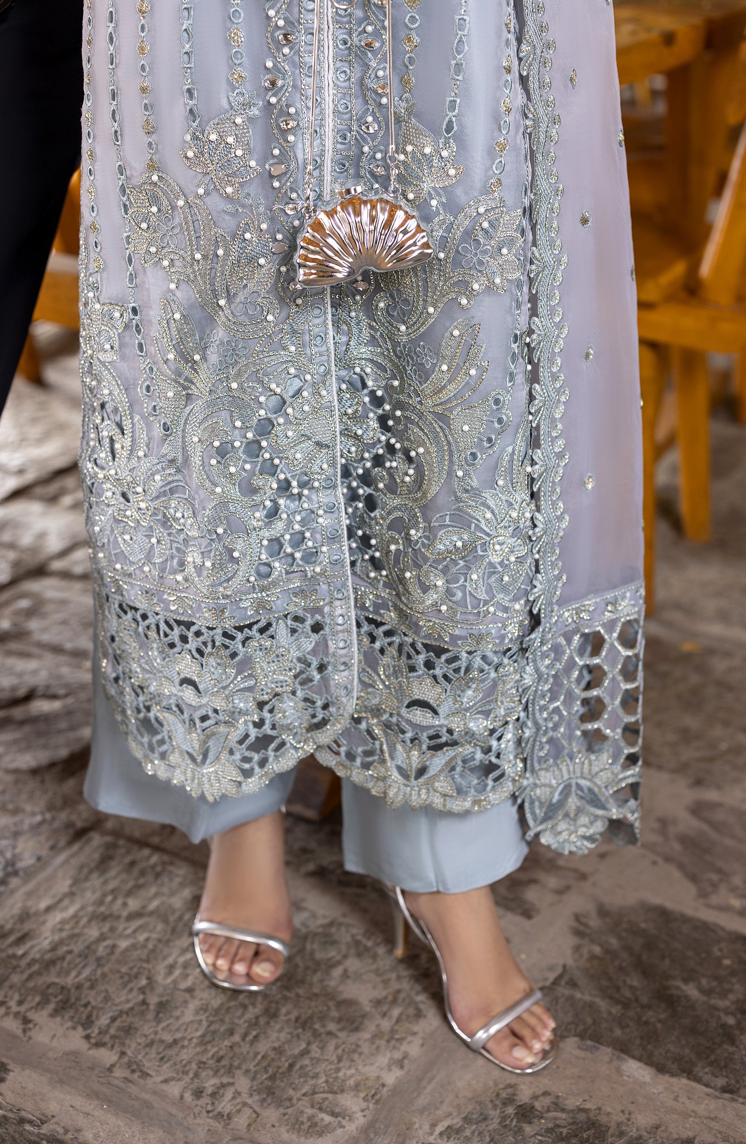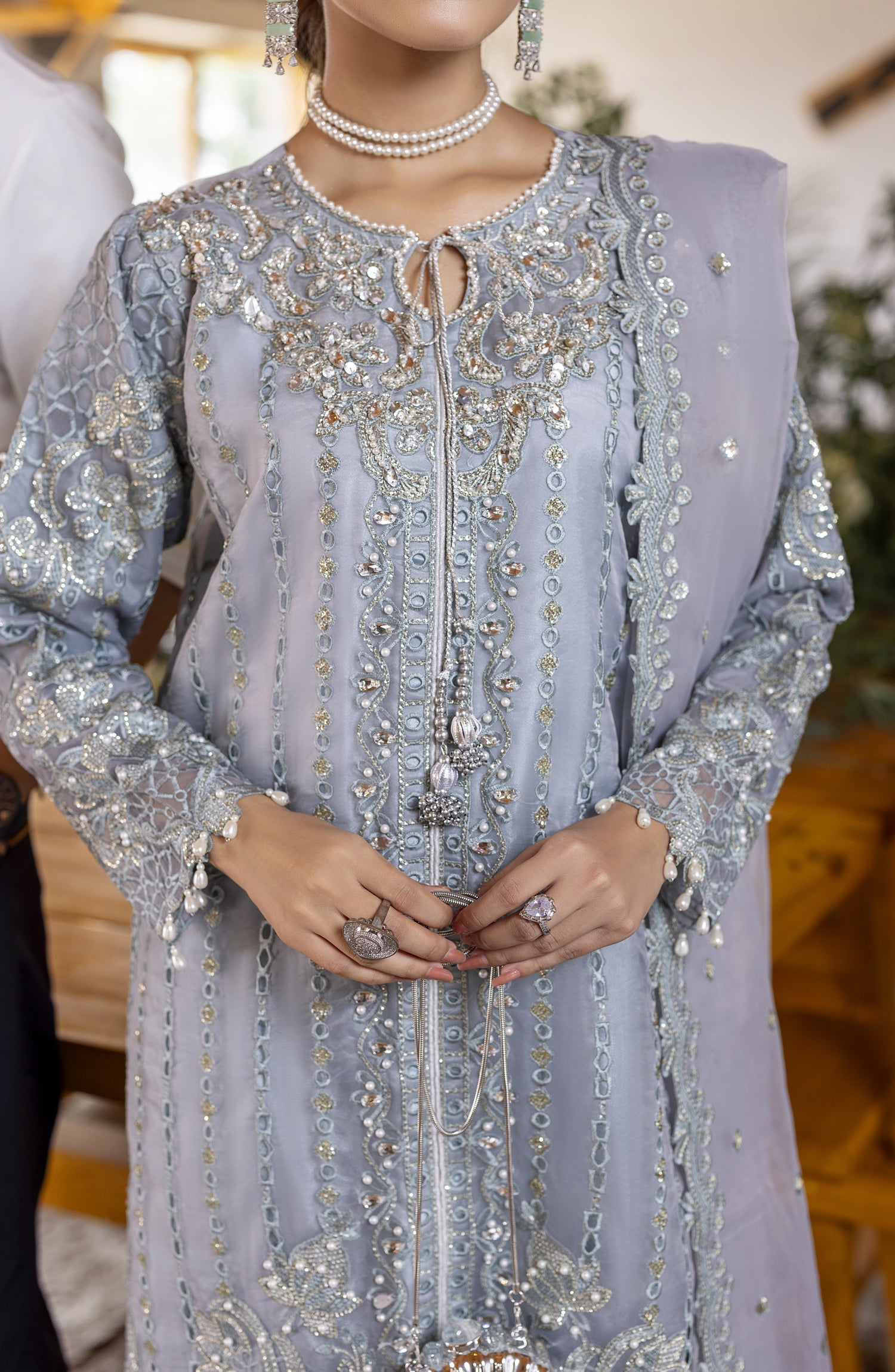 Kumari by Diara Couture Embroidered Organza Stitched 3 Piece Suit - MOONLIT SAPPHIRE - DC25KMR - Grey Blue - Luxury Collection