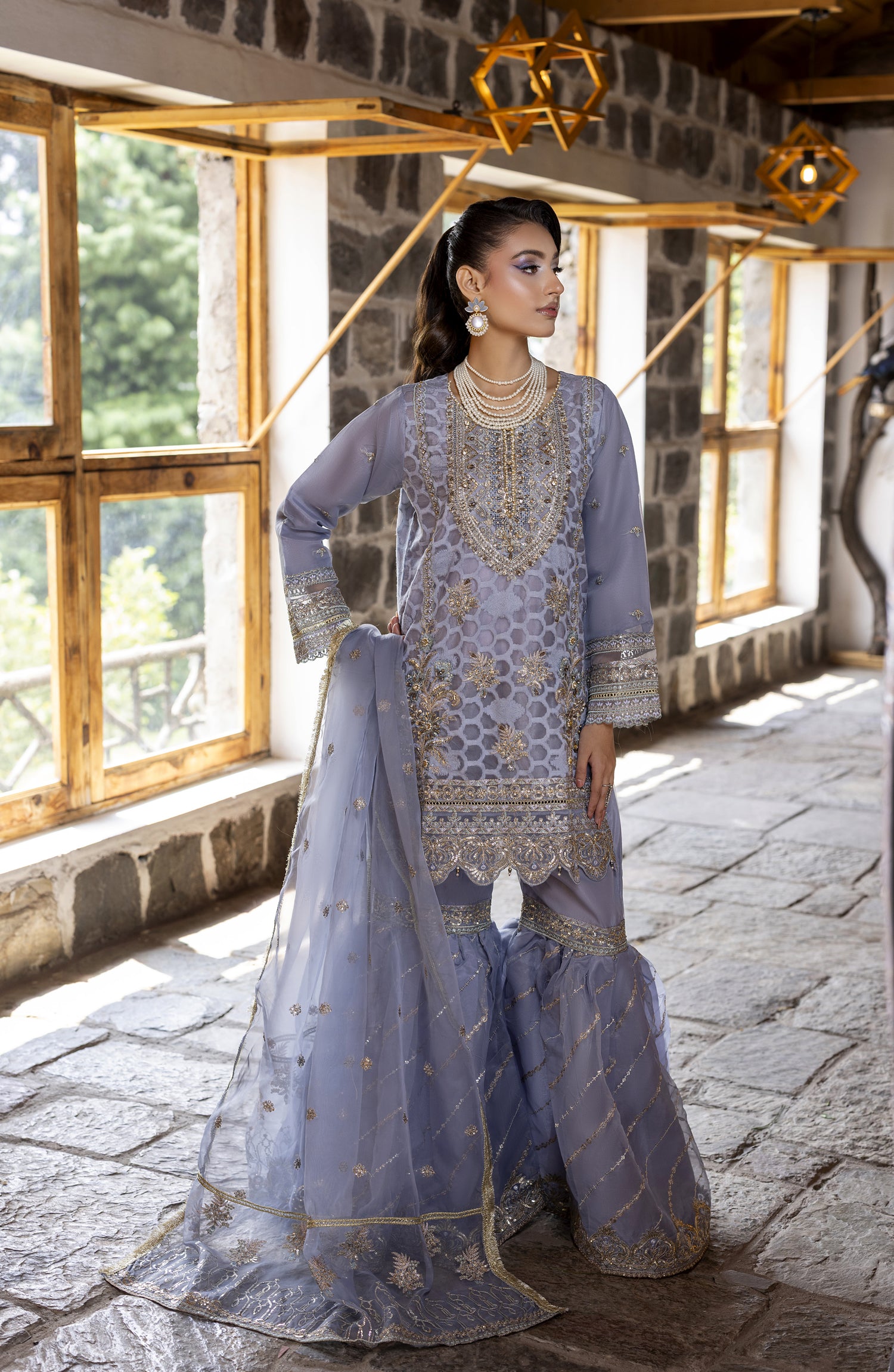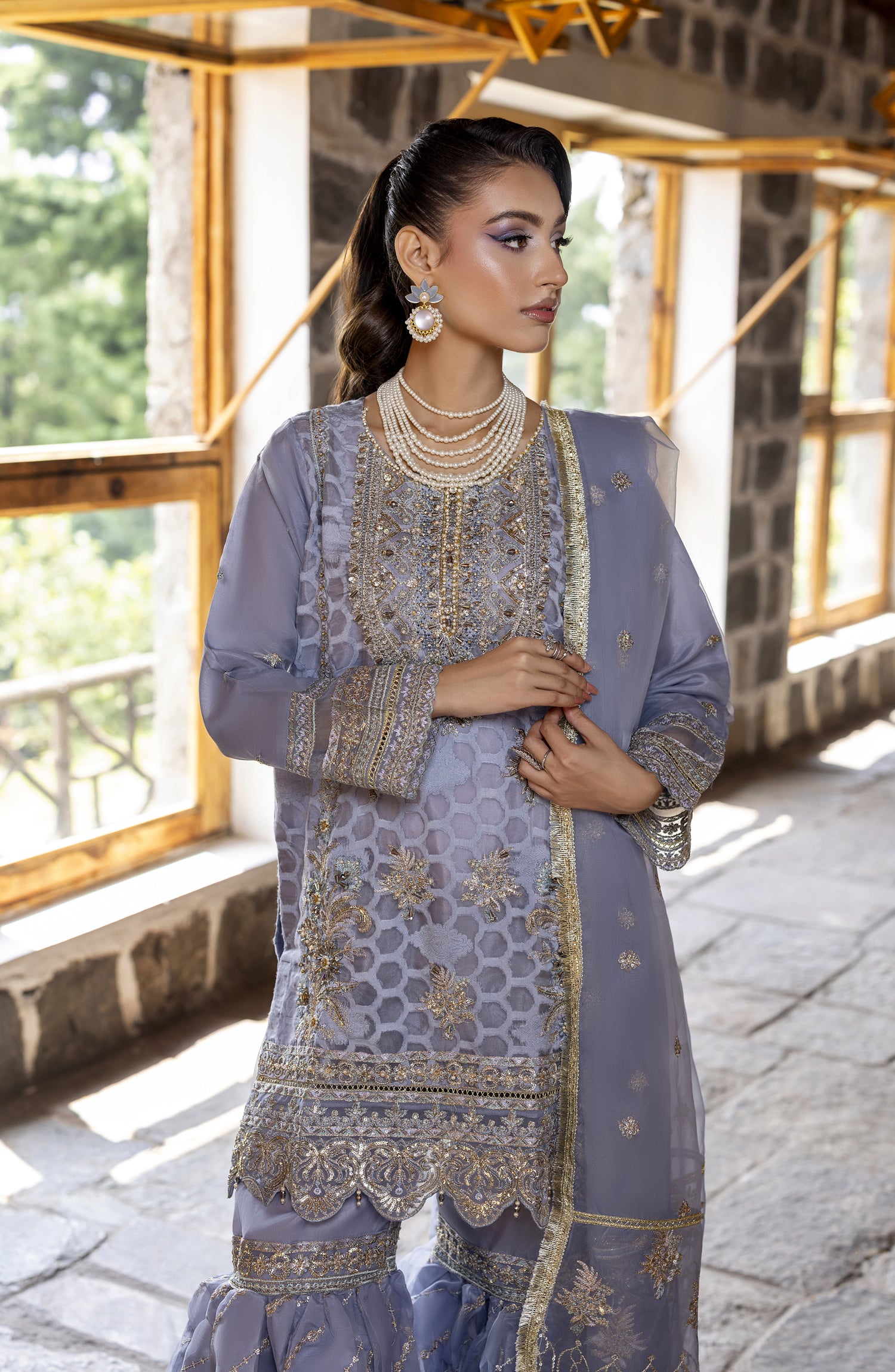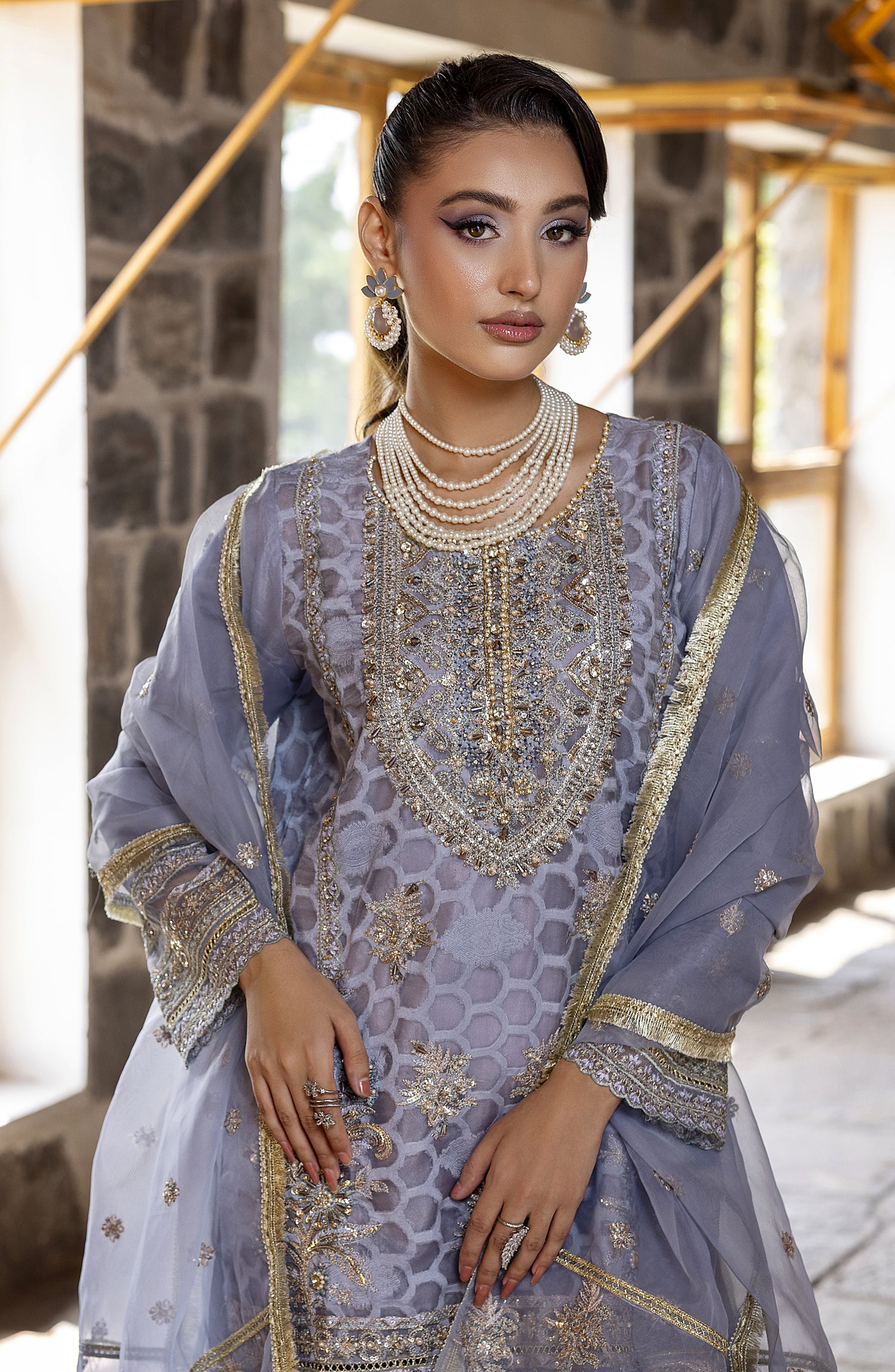 Kumari by Diara Couture Embroidered Organza Stitched 3 Piece Suit - MOONLIT SAPPHIRE - DC25KMR - Grey Blue - Luxury Collection