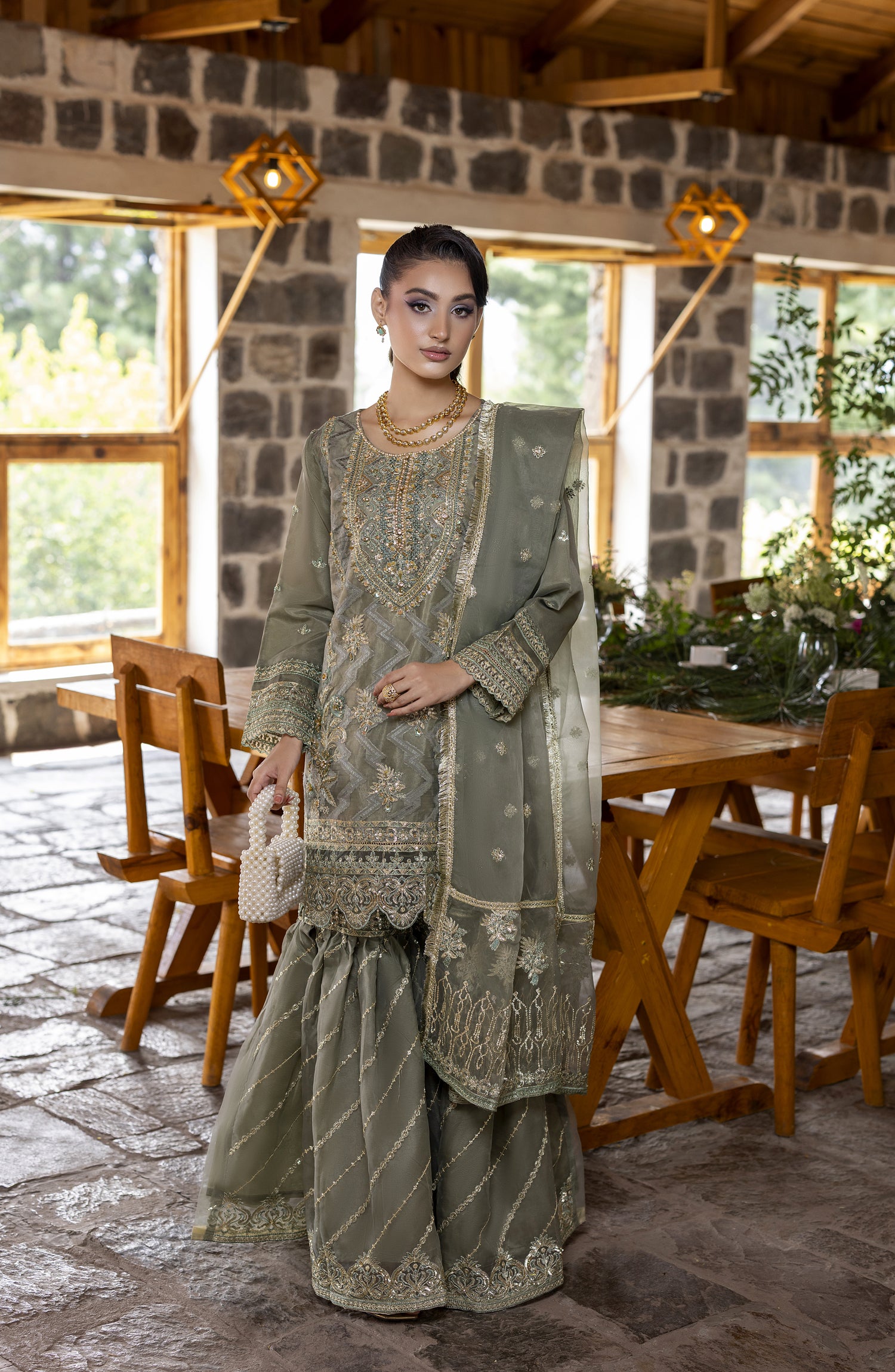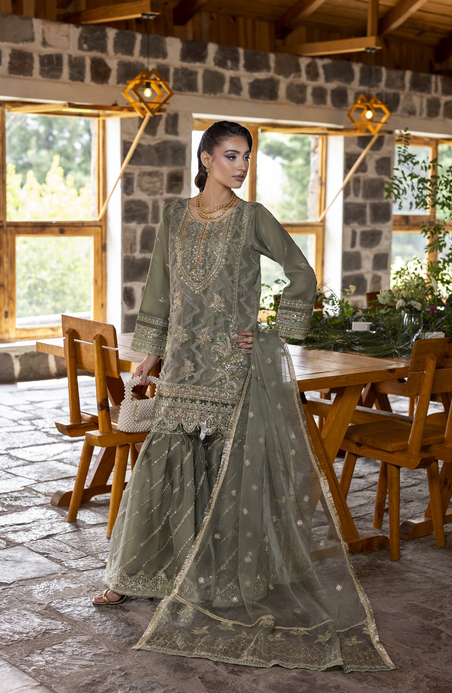 Kumari by Diara Couture Embroidered Organza Stitched 3 Piece Suit - SHAHNOOR - DC25KMR - Grey - Luxury Collection