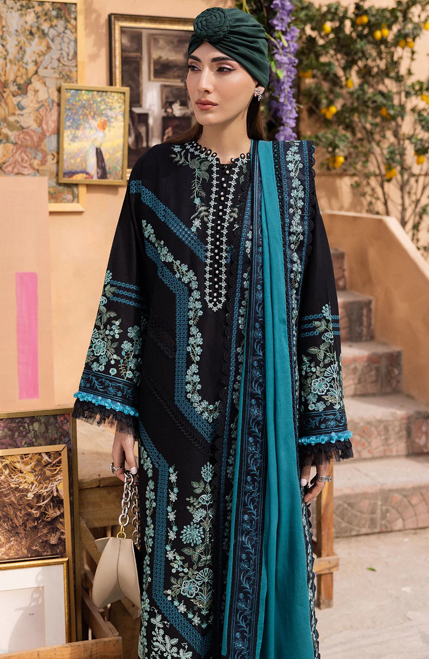 L'AMOUR LUXURY LAWN Collection By Saad Shaikh has been styled in the image for photography and illustrative purposes.
