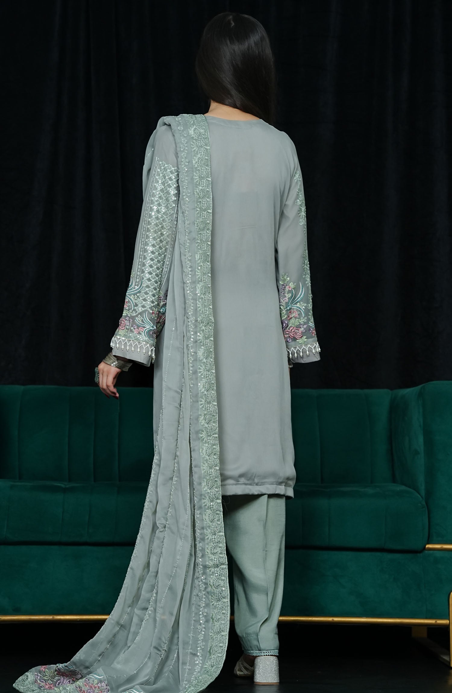 La Fleur by Amna Khadija Embroidered Chiffon Stitched 3 Piece Suit - LFFP-17 MBCH01 - AM25LFD2 - Green - Festive Collection