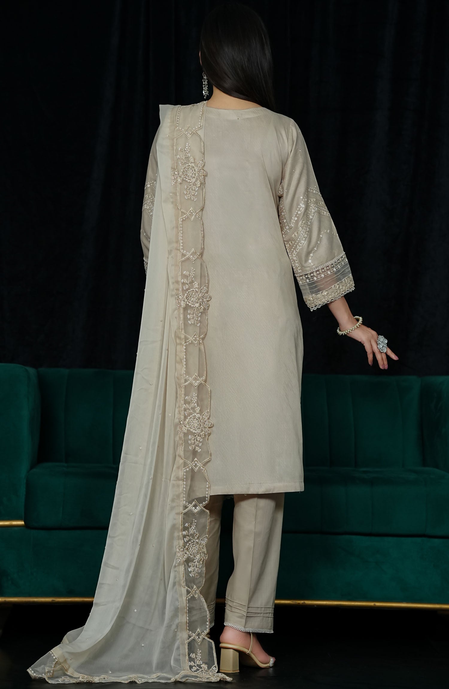 The standard style comes as a long-sleeved kameez with dupatta and trouser/shawlar.