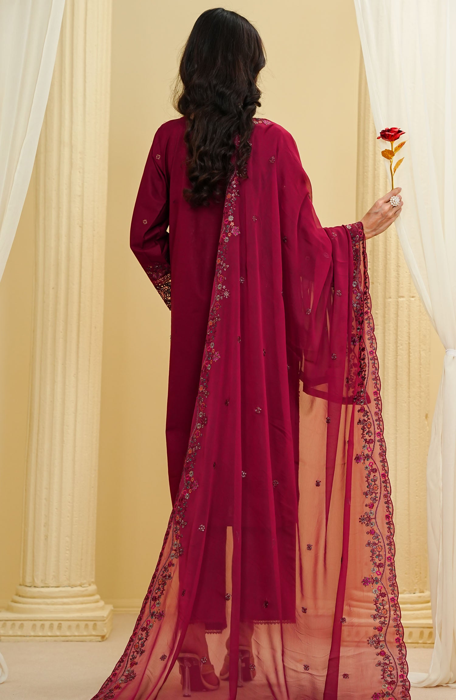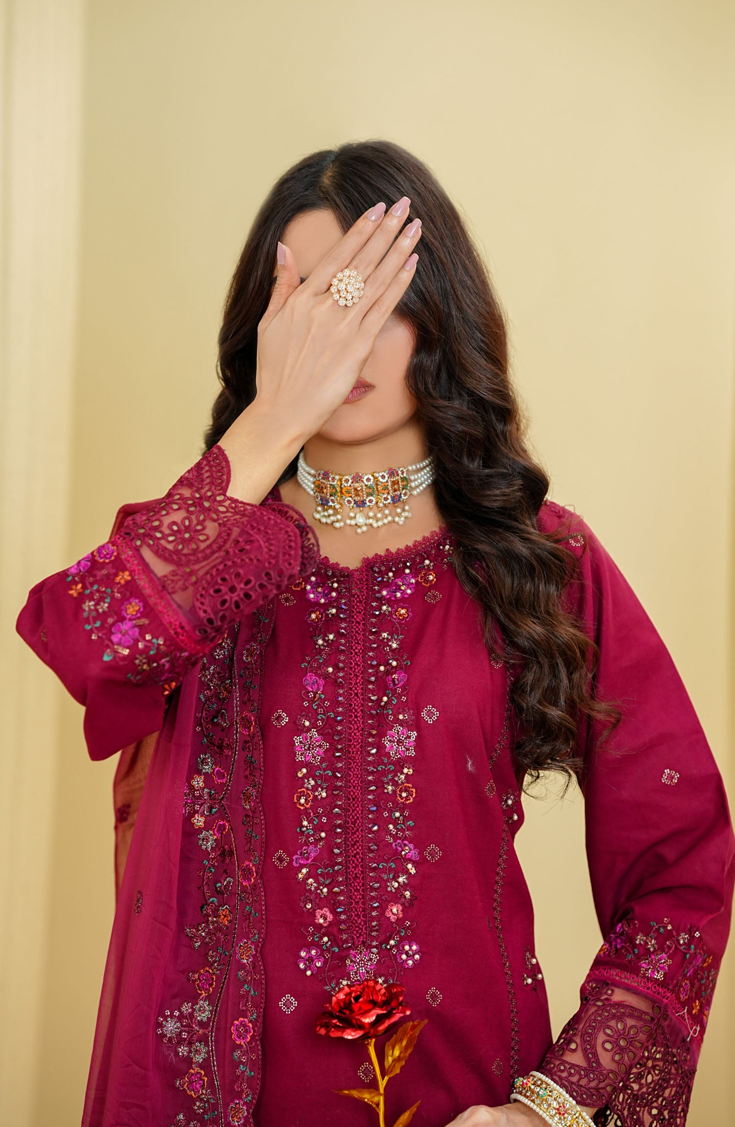 La Fleur by Amna Khadija Embroidered Cotton Stitched 3 Piece Suit - LFFP-26 - AM25LFD2 - Maroon - Festive Collection