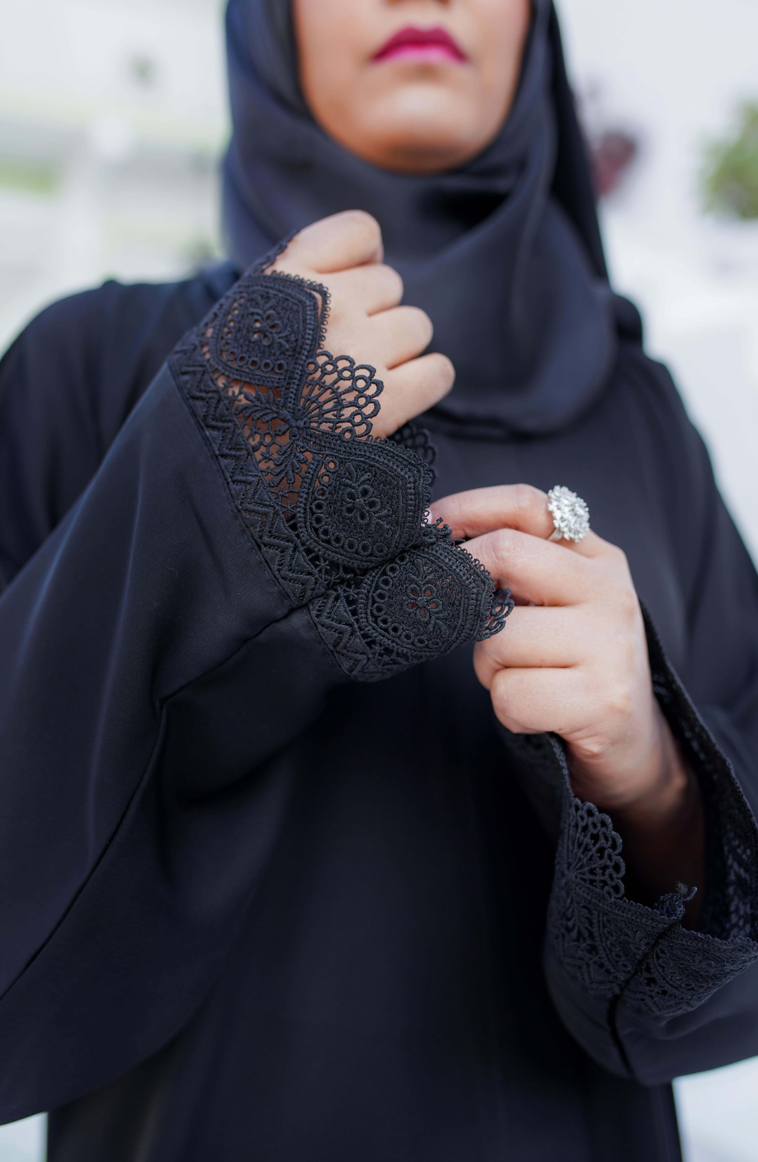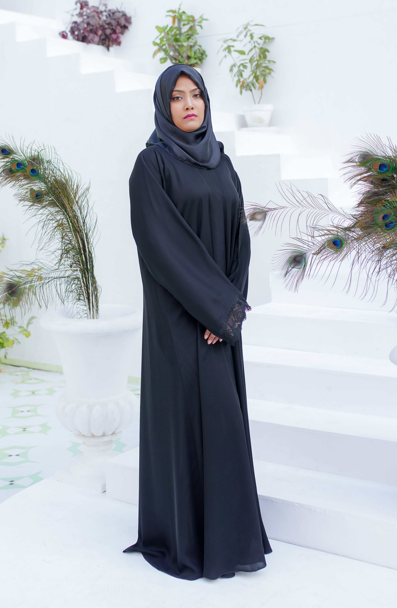 This simple sophisticated Abaya with fancy Lace details is perfect for daily wear. Its Flowy and lightweight fabric makes it comfortable to wear and carry.
