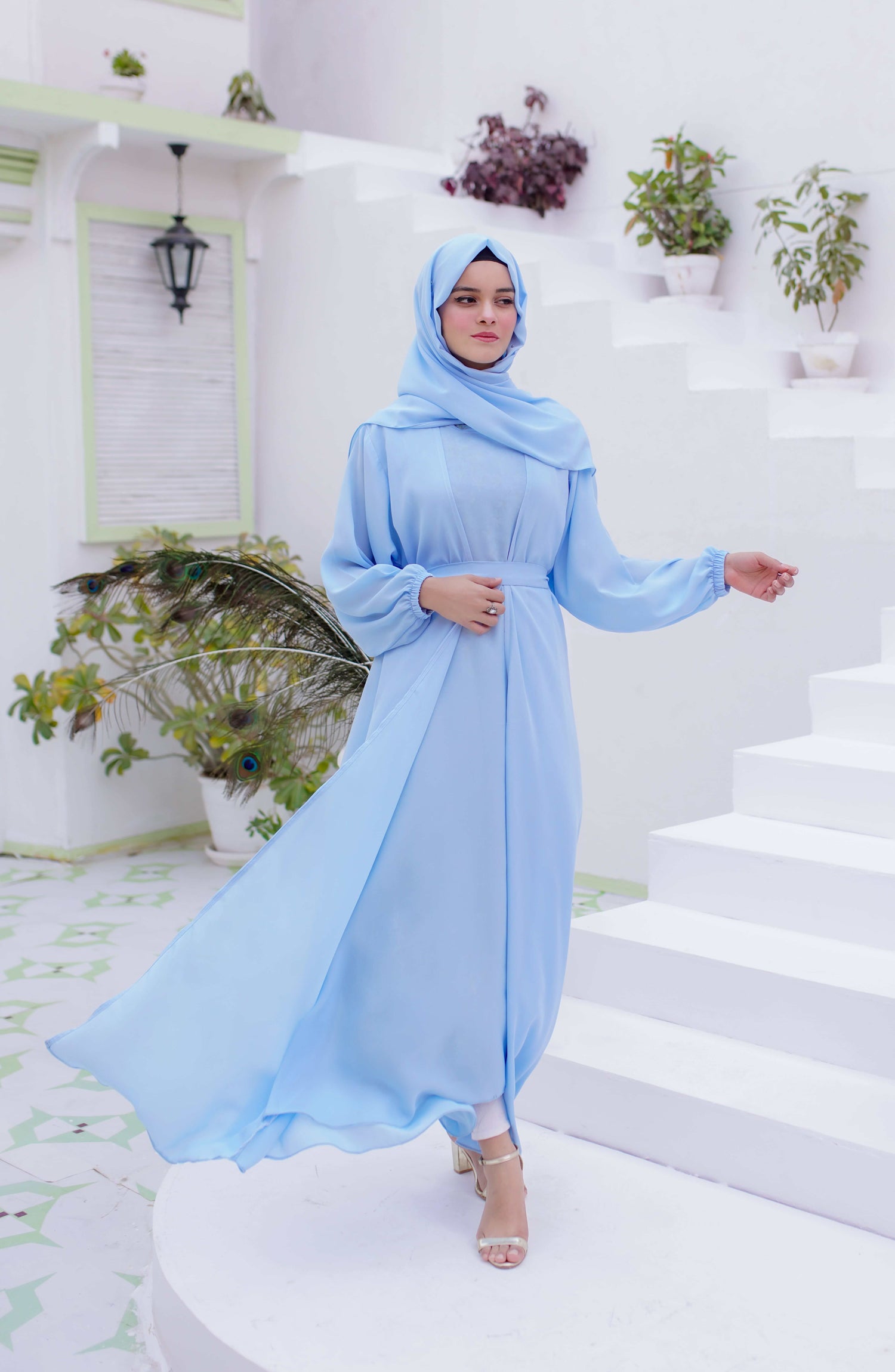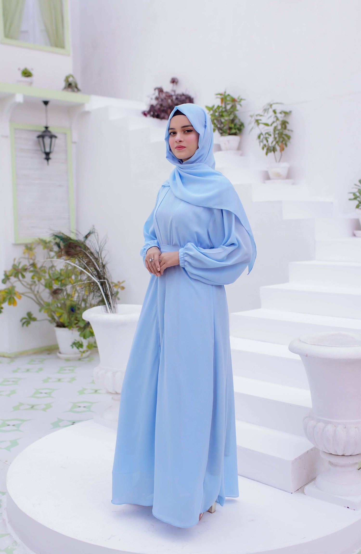 Stay effortlessly stylish and comfortable in this premium open Abaya with attached inner and provided belt for a perfect fit crafted from lightweight Georgette in fresh Vibrant color. This is both airy and flowy, perfect for warm weather.