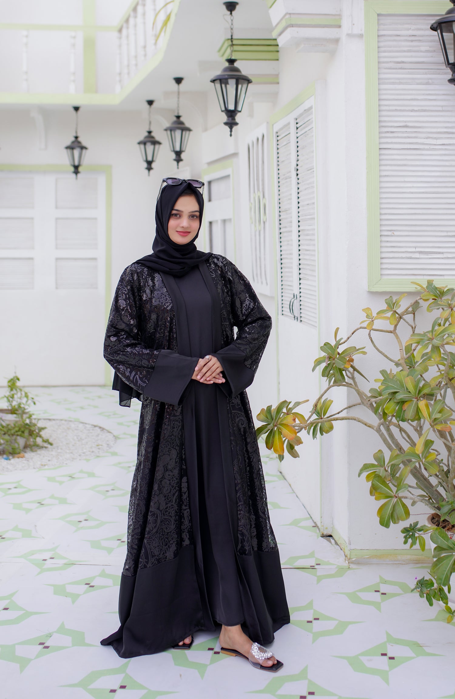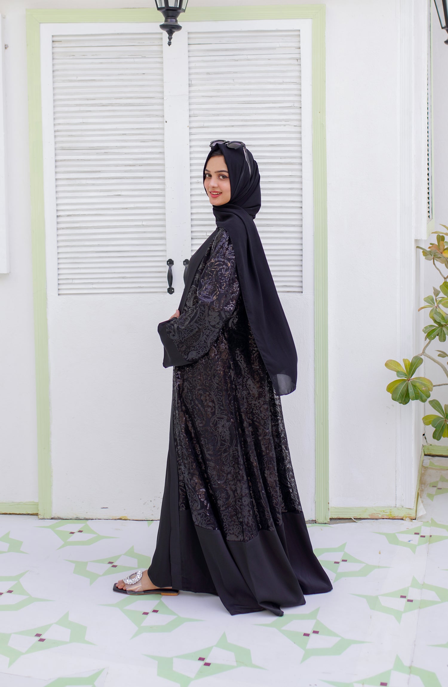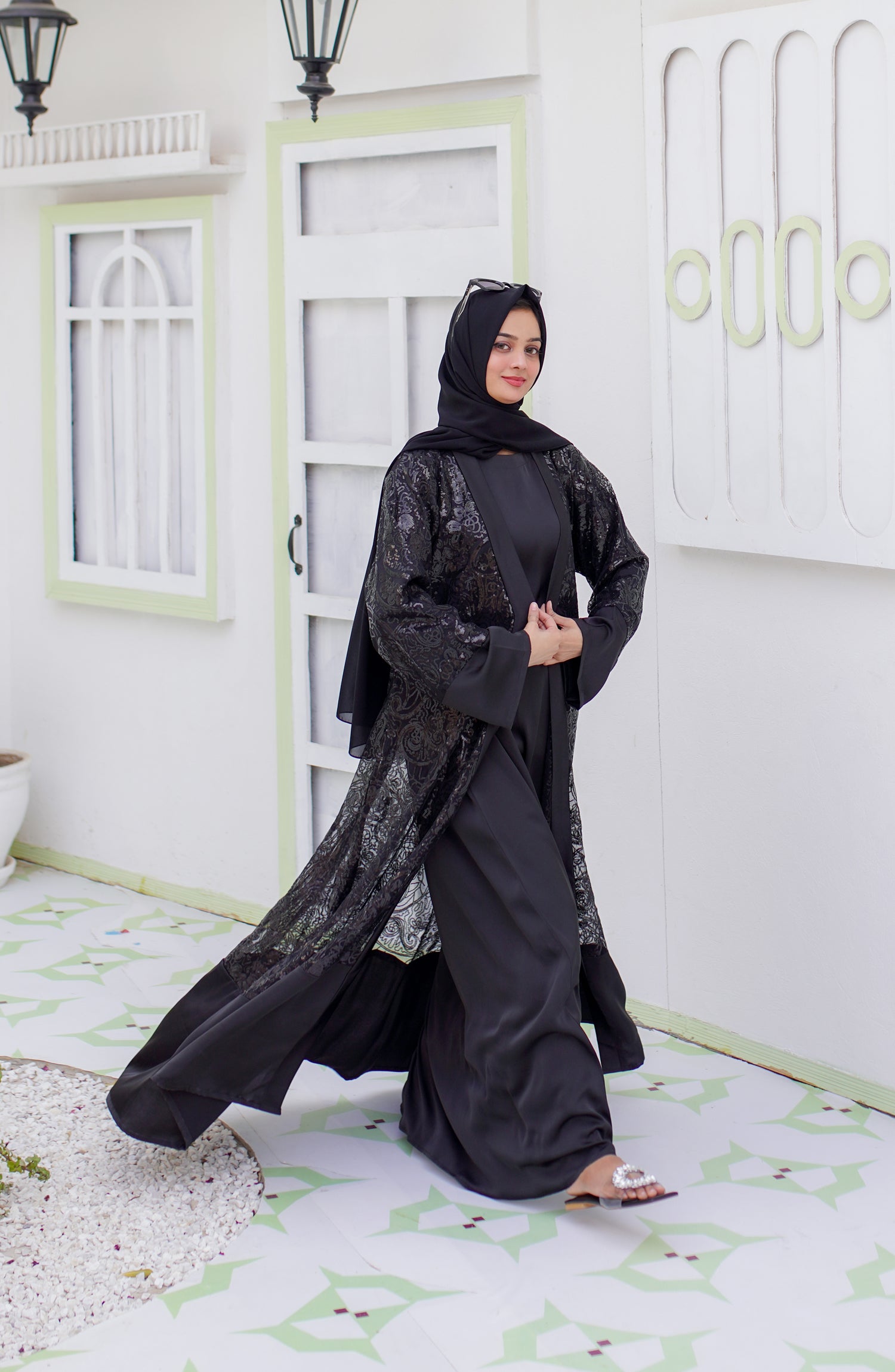 Add timeless luxury to your wardrobe with this unique and one of-a-kind Royal black sequin Kimino. The soft luxurious fabric is adorned with eye-catching sequin all over.