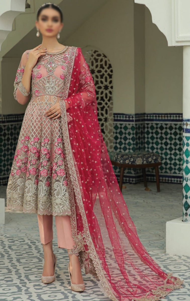 Embroidered net for dupatta: Dyed raw silk for trousers: