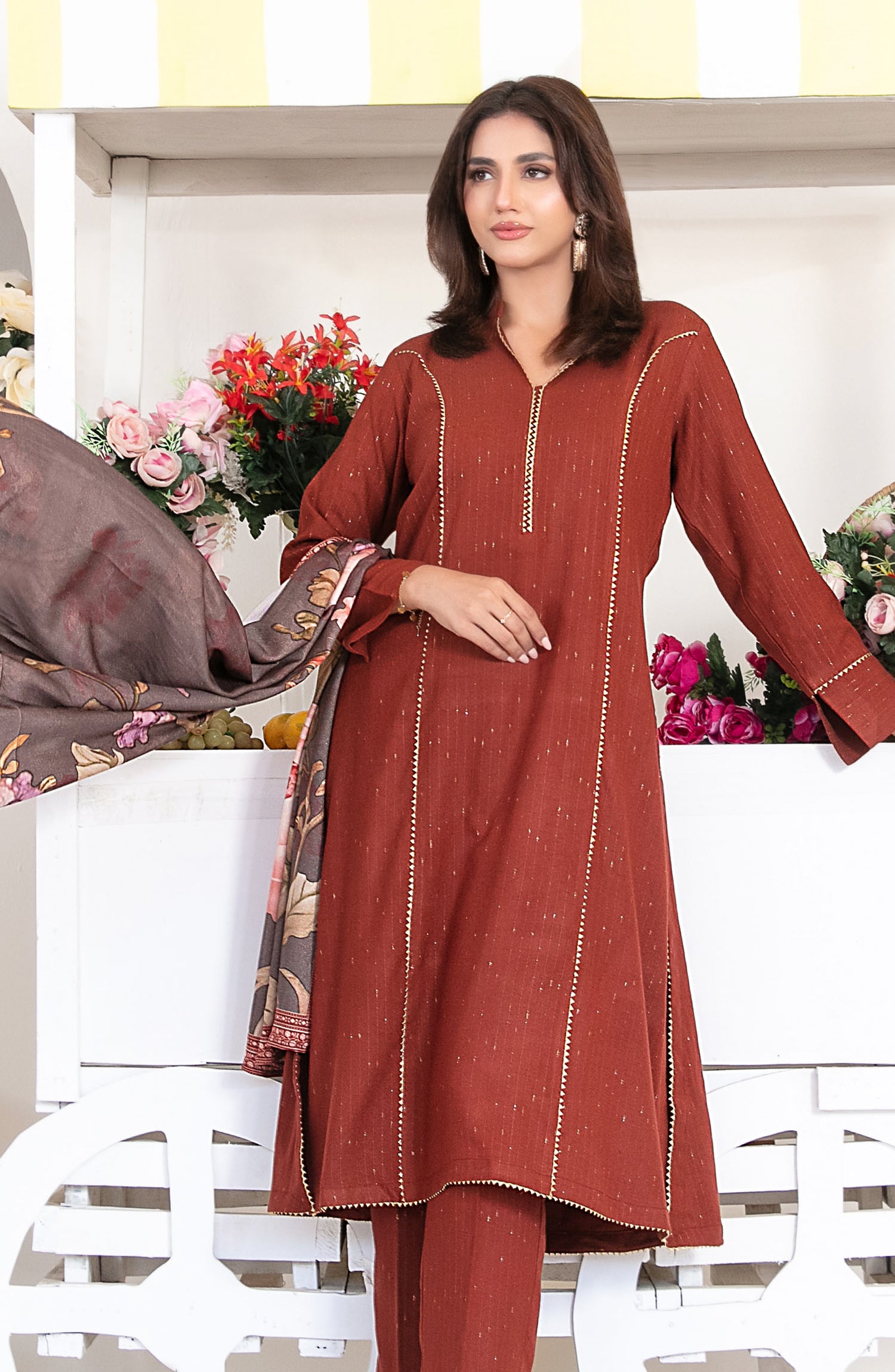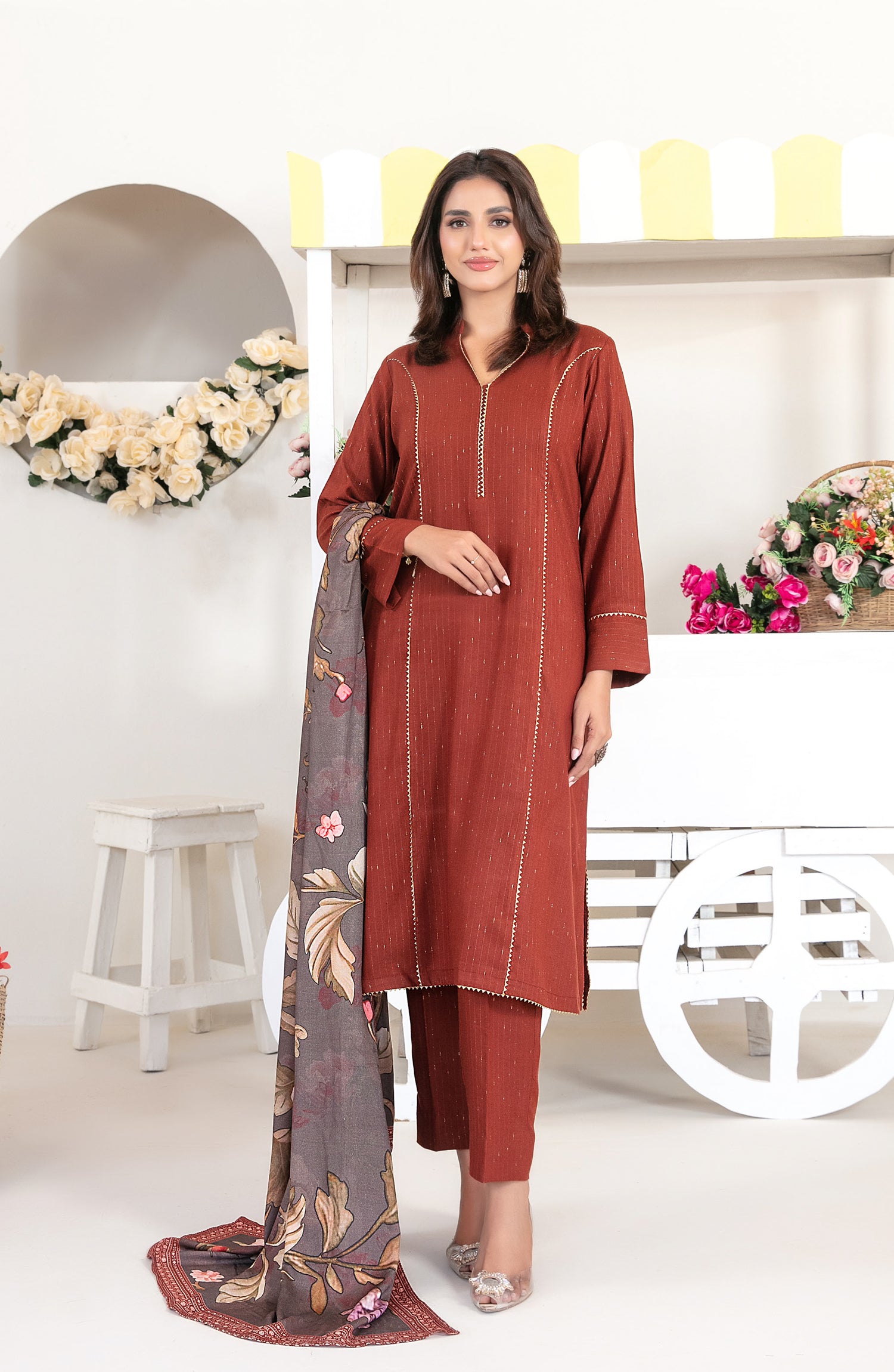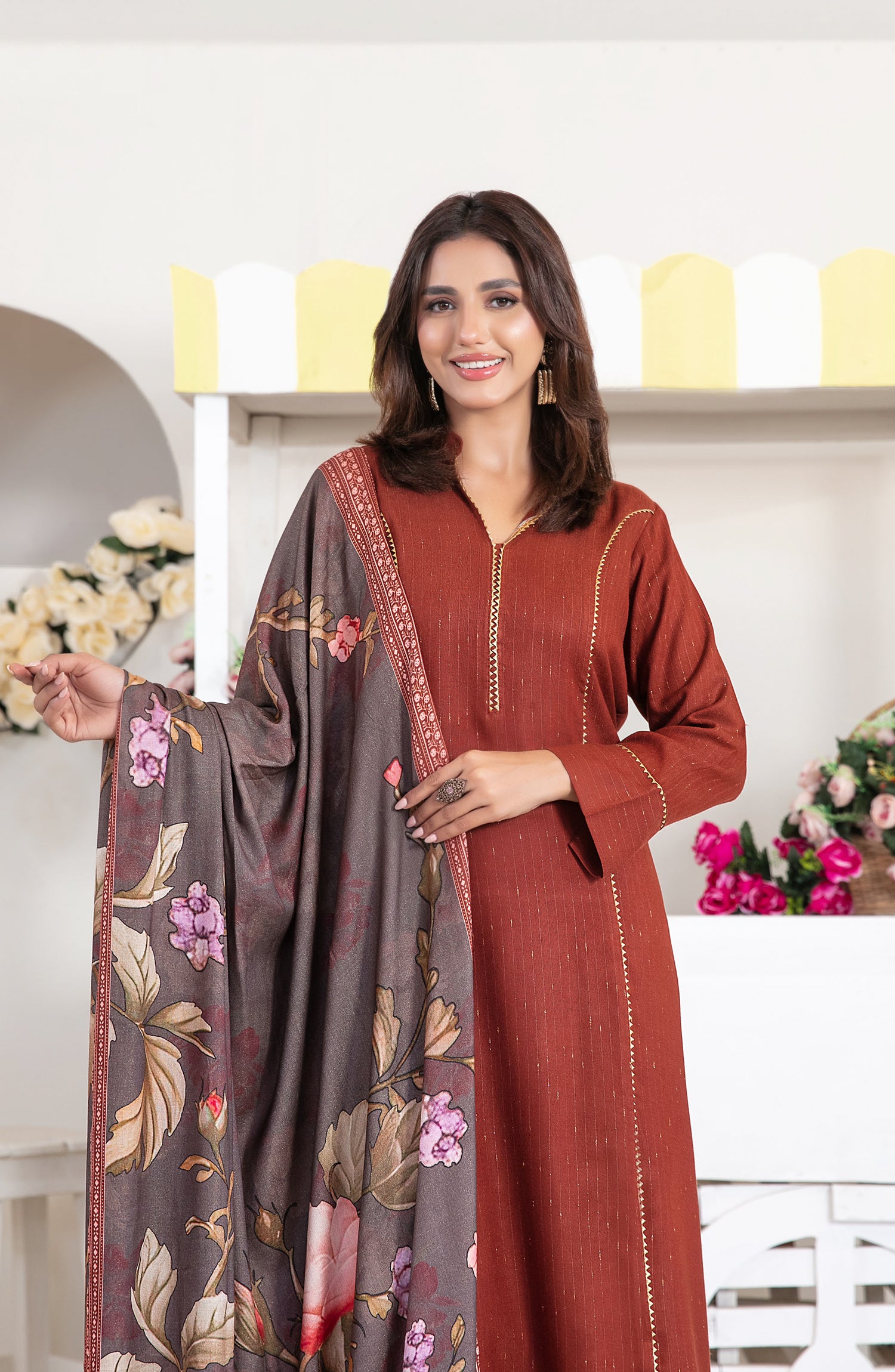Fancy Digital Printed Leather Peach Unstitched 3 Piece Suit
