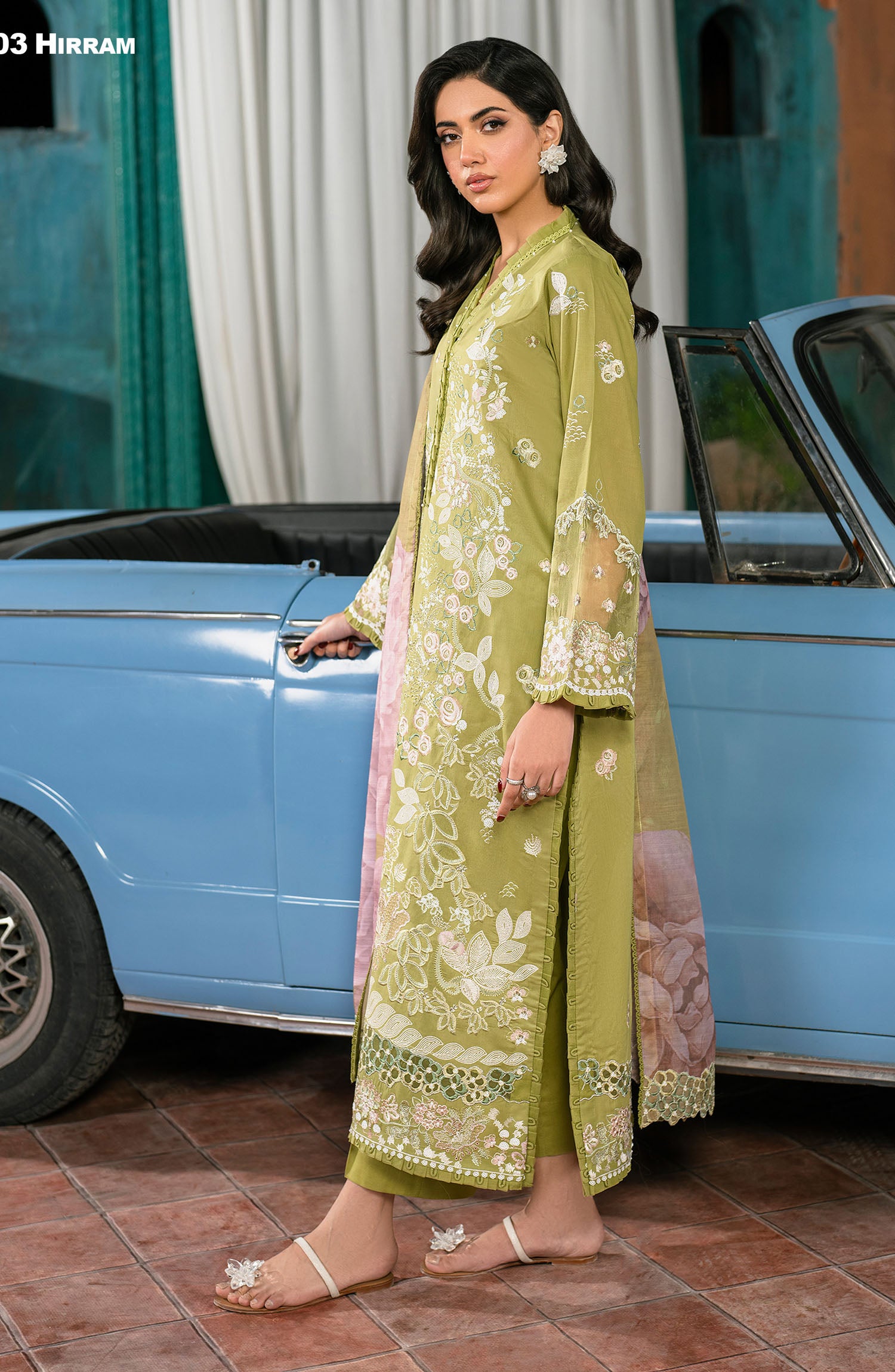 Home Lamhay by Zarif Embroidered Lawn Unstitched 3 Piece Suit - UNST-LMLW-03 Hirram - ZF25LLEL - Green - Summer Collection