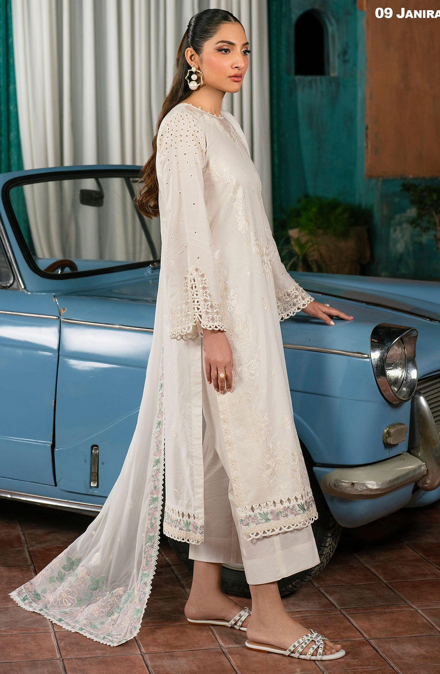 Lamhay by Zarif Embroidered Lawn Unstitched 3 Piece Suit - UNST-LMLW-09 Janira - ZF25LLEL - White - Summer Collection