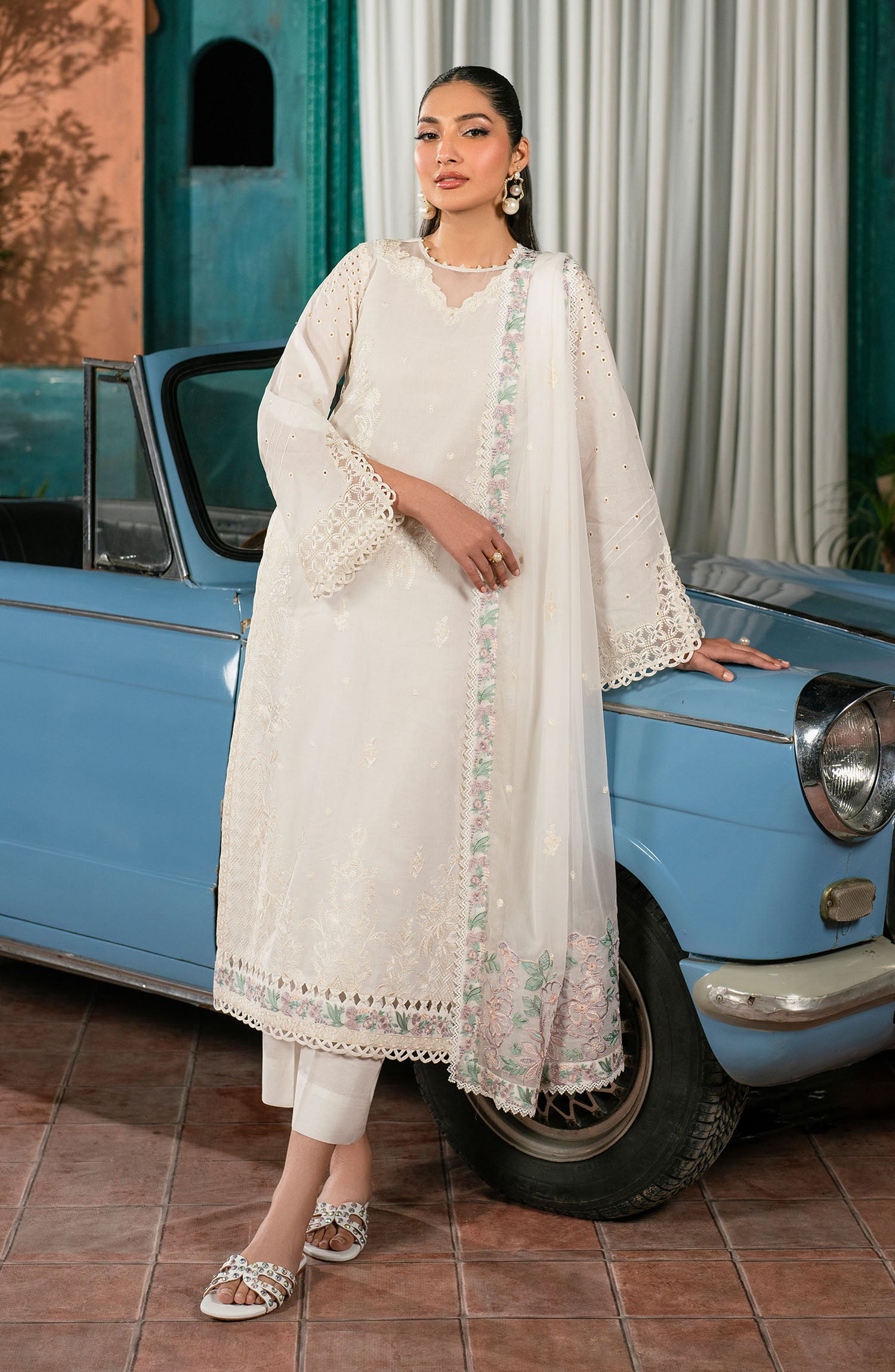 Home Lamhay by Zarif Embroidered Lawn Unstitched 3 Piece Suit - UNST-LMLW-09 Janira - ZF25LLEL - White - Summer Collection