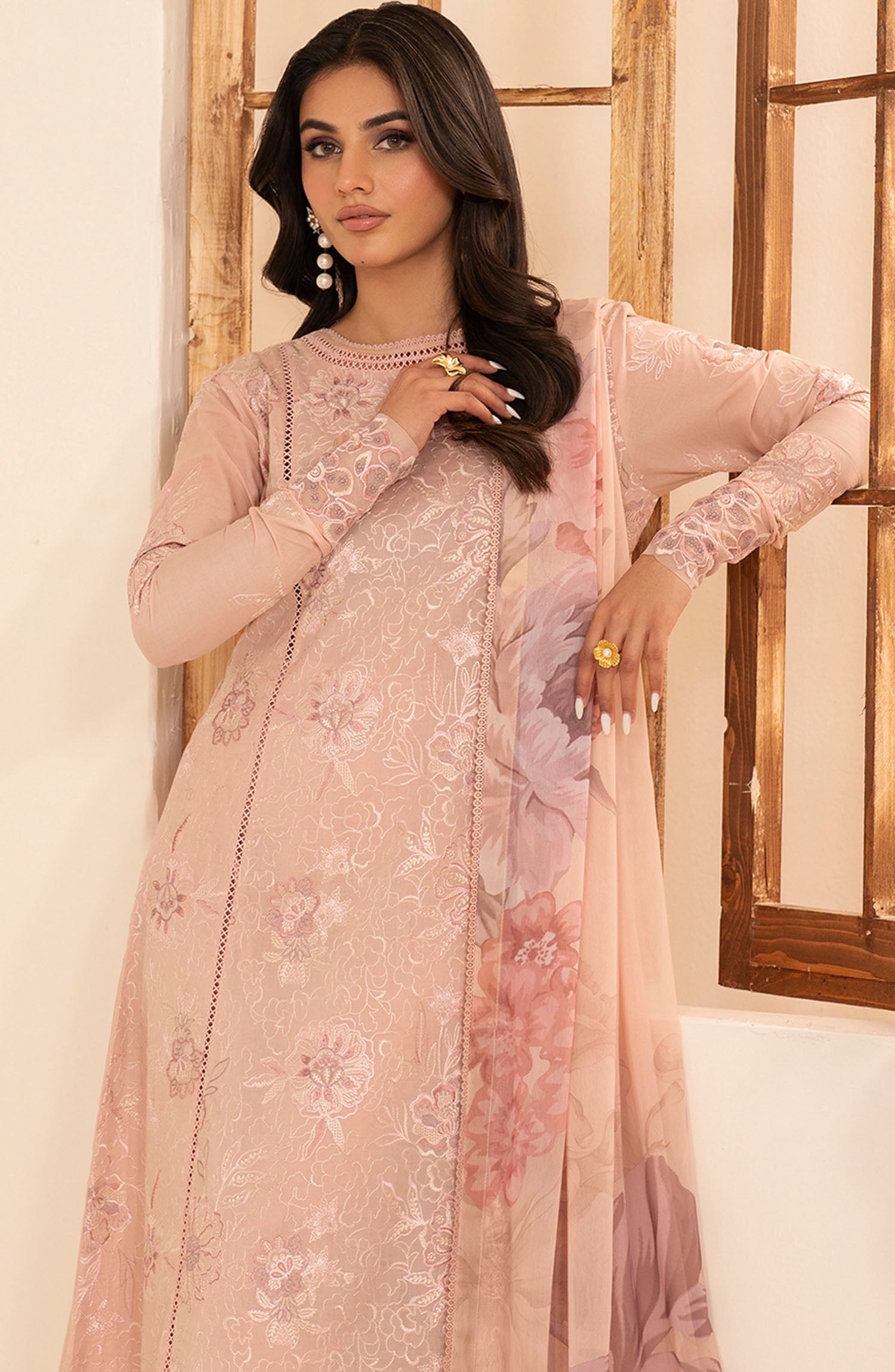 Lamhay by Zarif Embroidered Lawn Unstitched 3 Piece Suit - UNST-LMLW-10 Areebah - ZF25LLEL - Peach - Summer Collection
