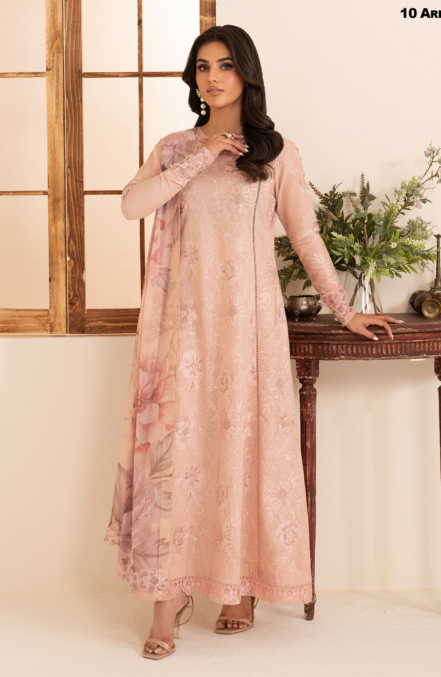 Home Lamhay by Zarif Embroidered Lawn Unstitched 3 Piece Suit - UNST-LMLW-10 Areebah - ZF25LLEL - Peach - Summer Collection