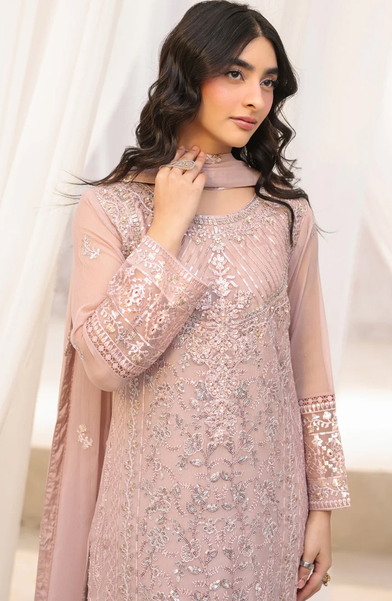 • Embroidered Chiffon Dupatta