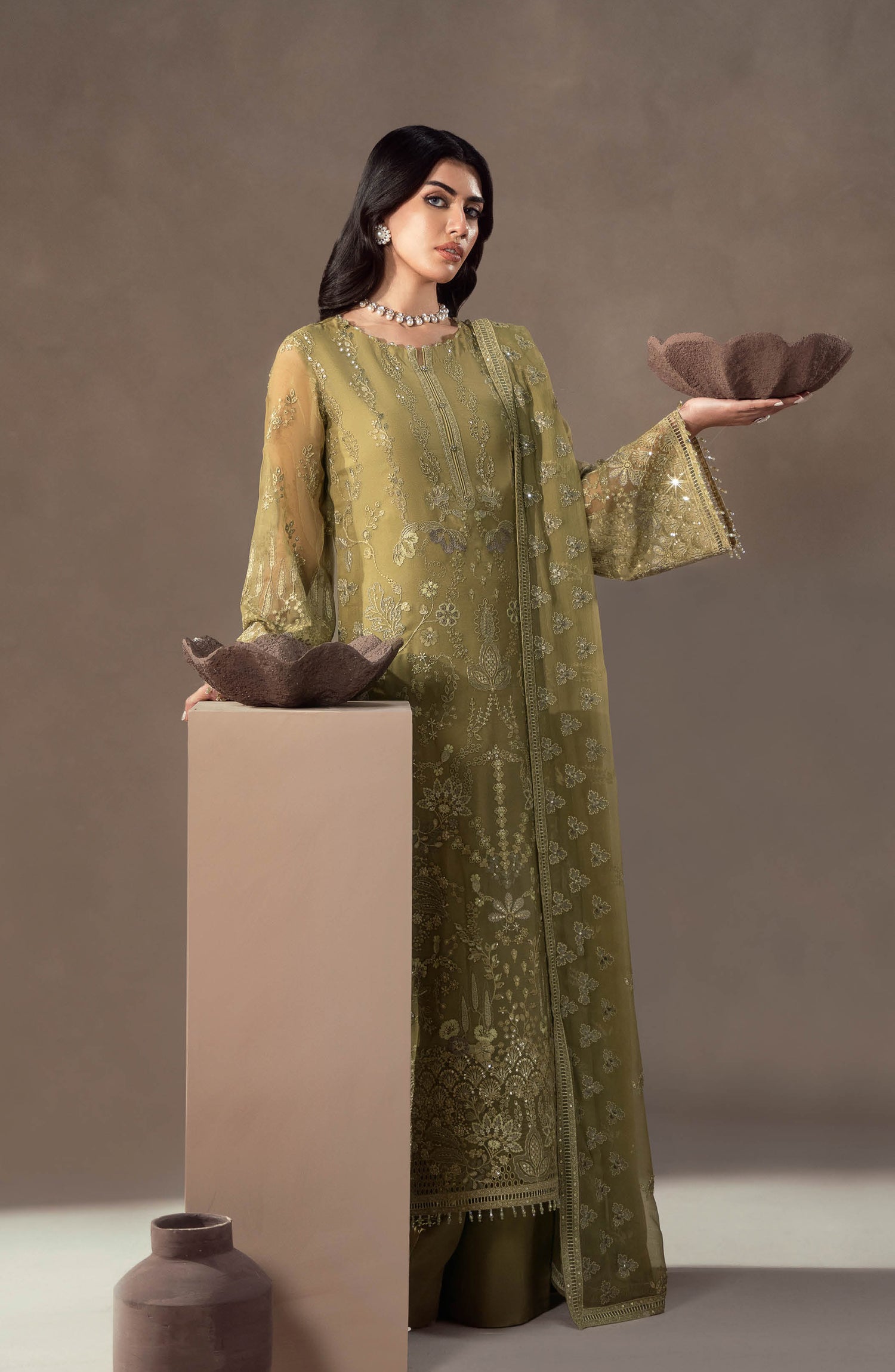 Luxury Premium Embroidered Chiffon Unstitched 3 Piece Suit