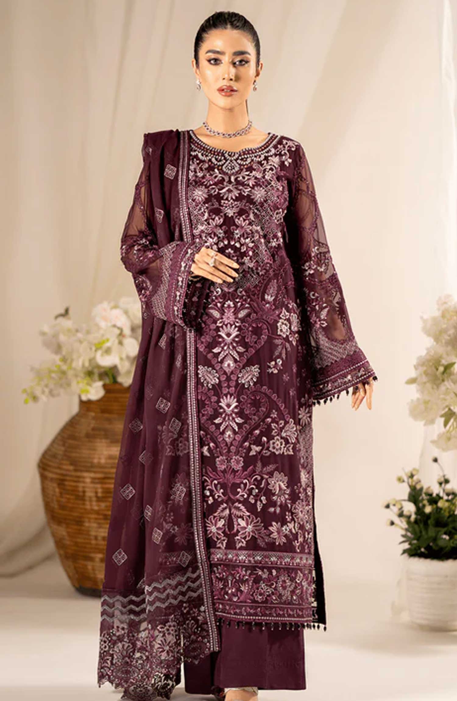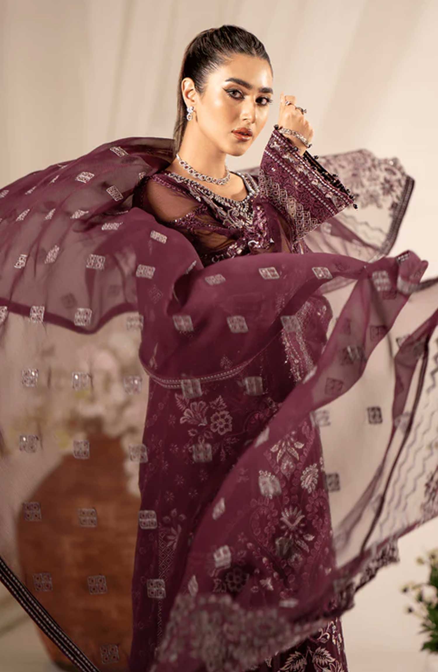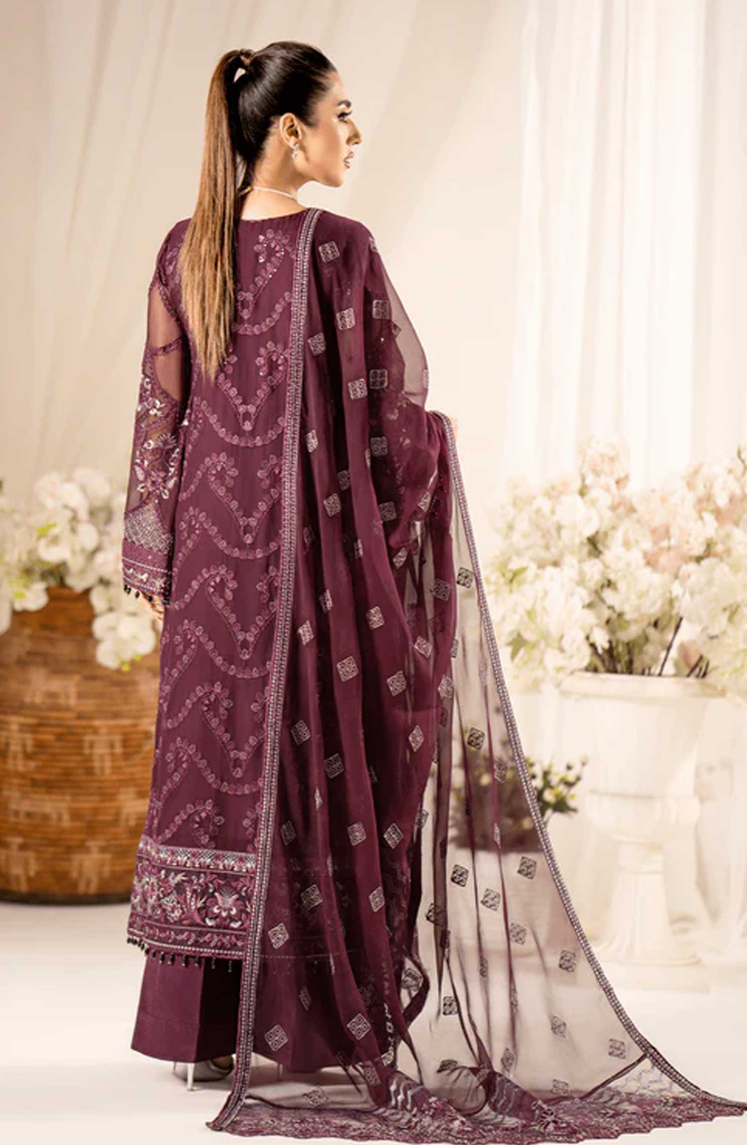 Lamisah Luxury Chiffon Unstitched Collection By Lavish Premium has been styled in the image for photography and illustrative purposes.