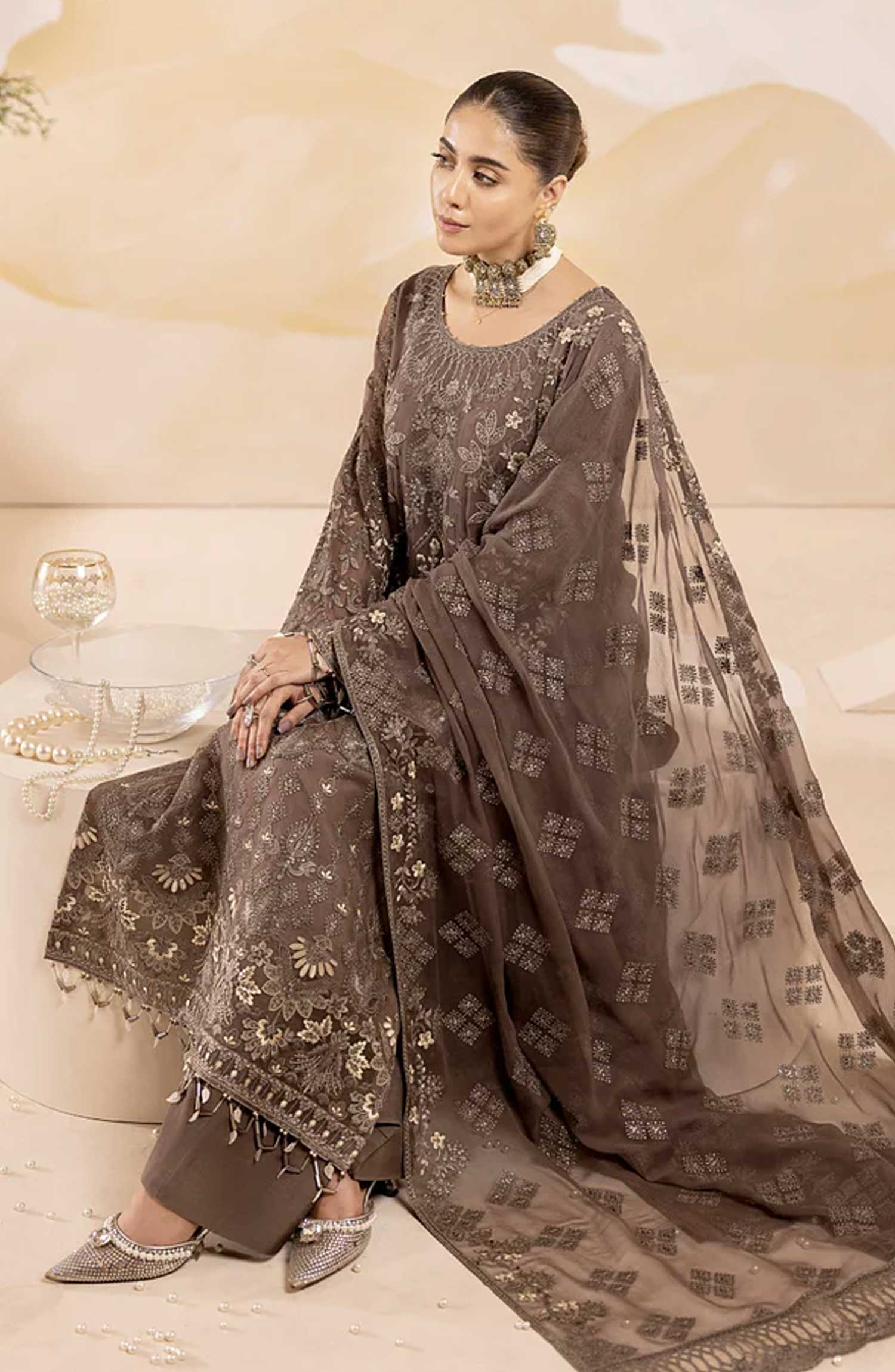 Lamisah Luxury Chiffon Unstitched Collection By Lavish Premium - Umber