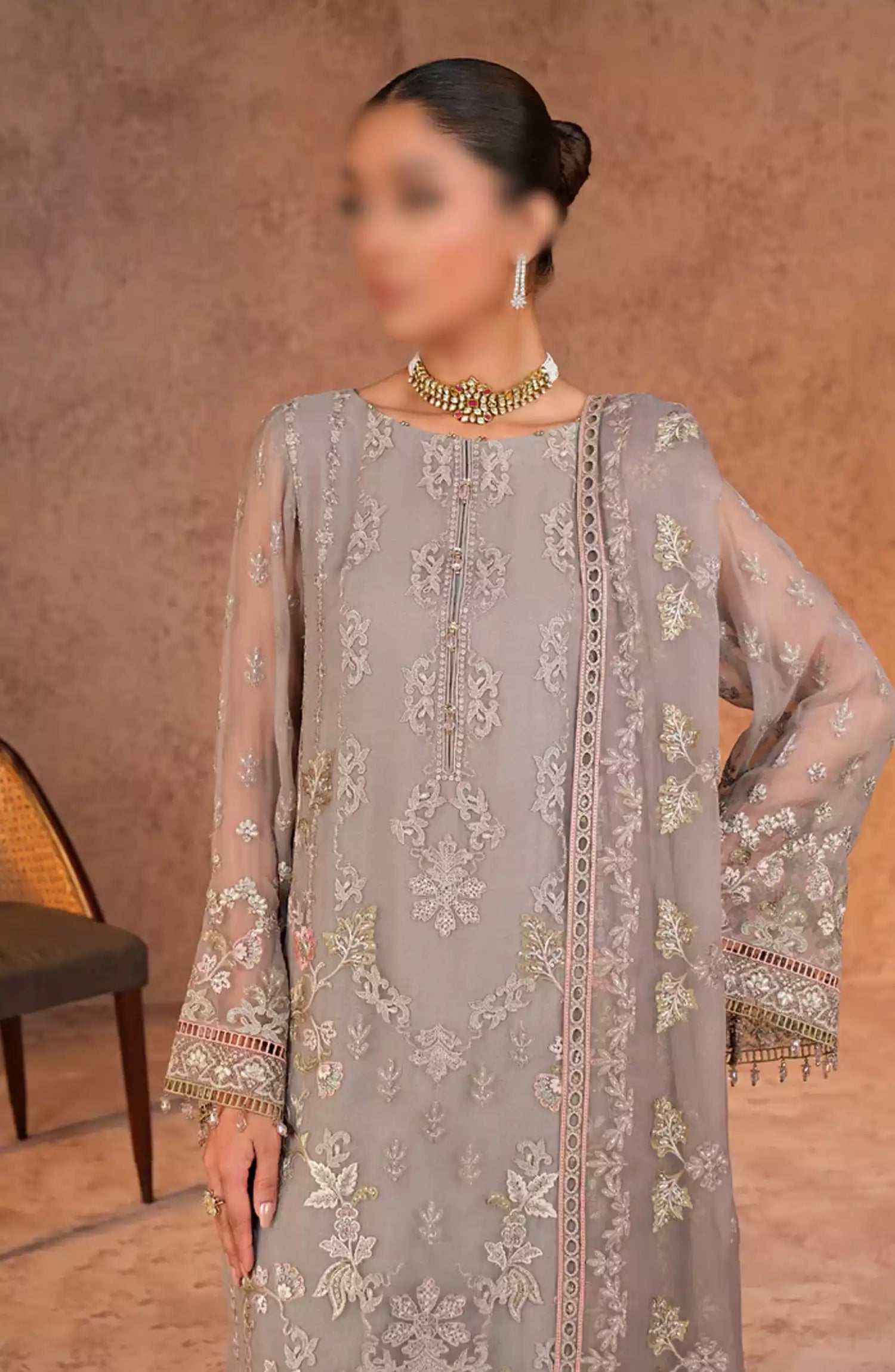 Home Lamisah Zebaish Luxury Chiffon Collection - Design -07 Fossil