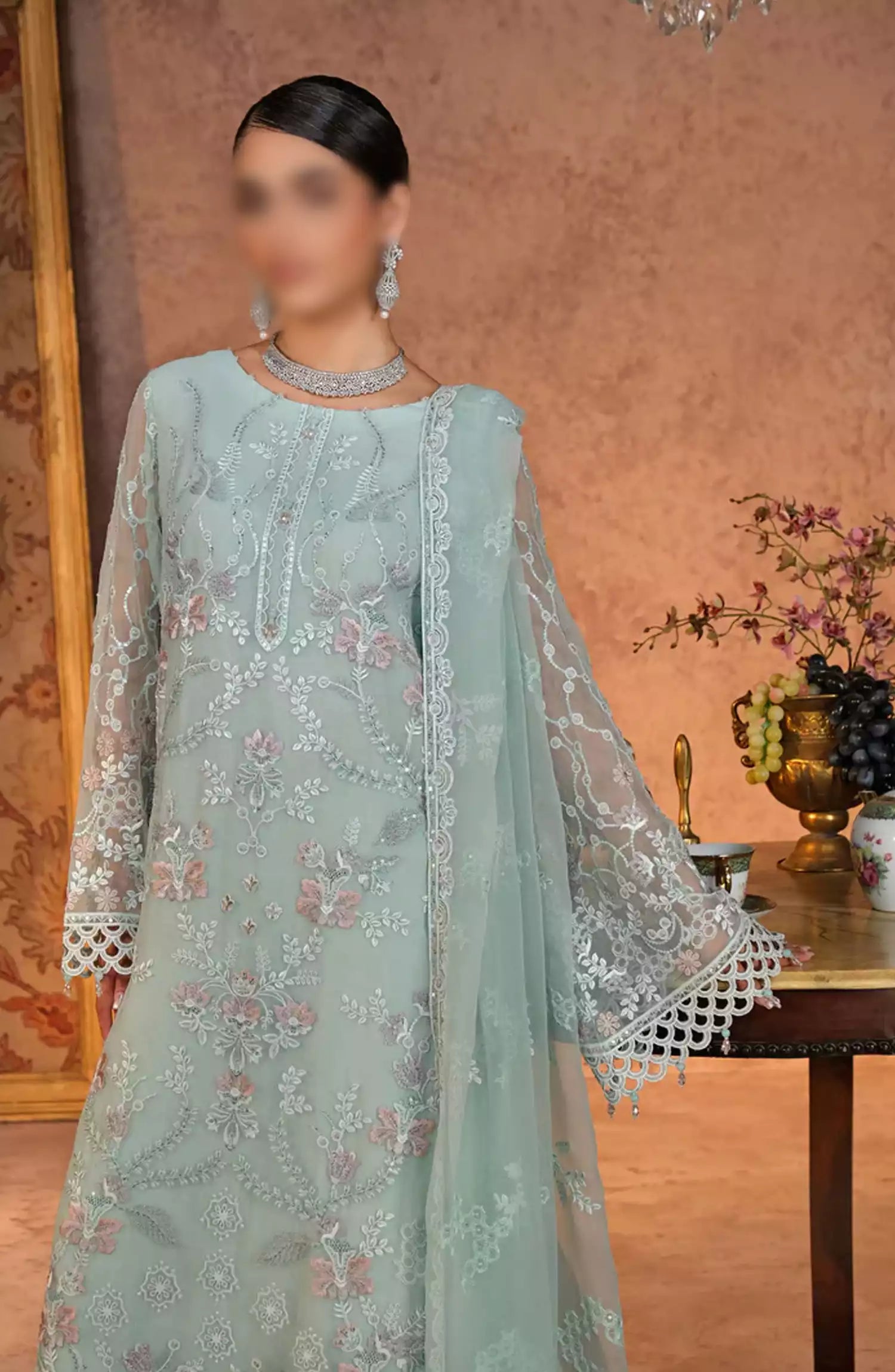 Modest Embroidered Chiffon Stitched 3 Piece Suit - 9840-Cblu - MOD25PRF - Blue - Festive Girls Collection