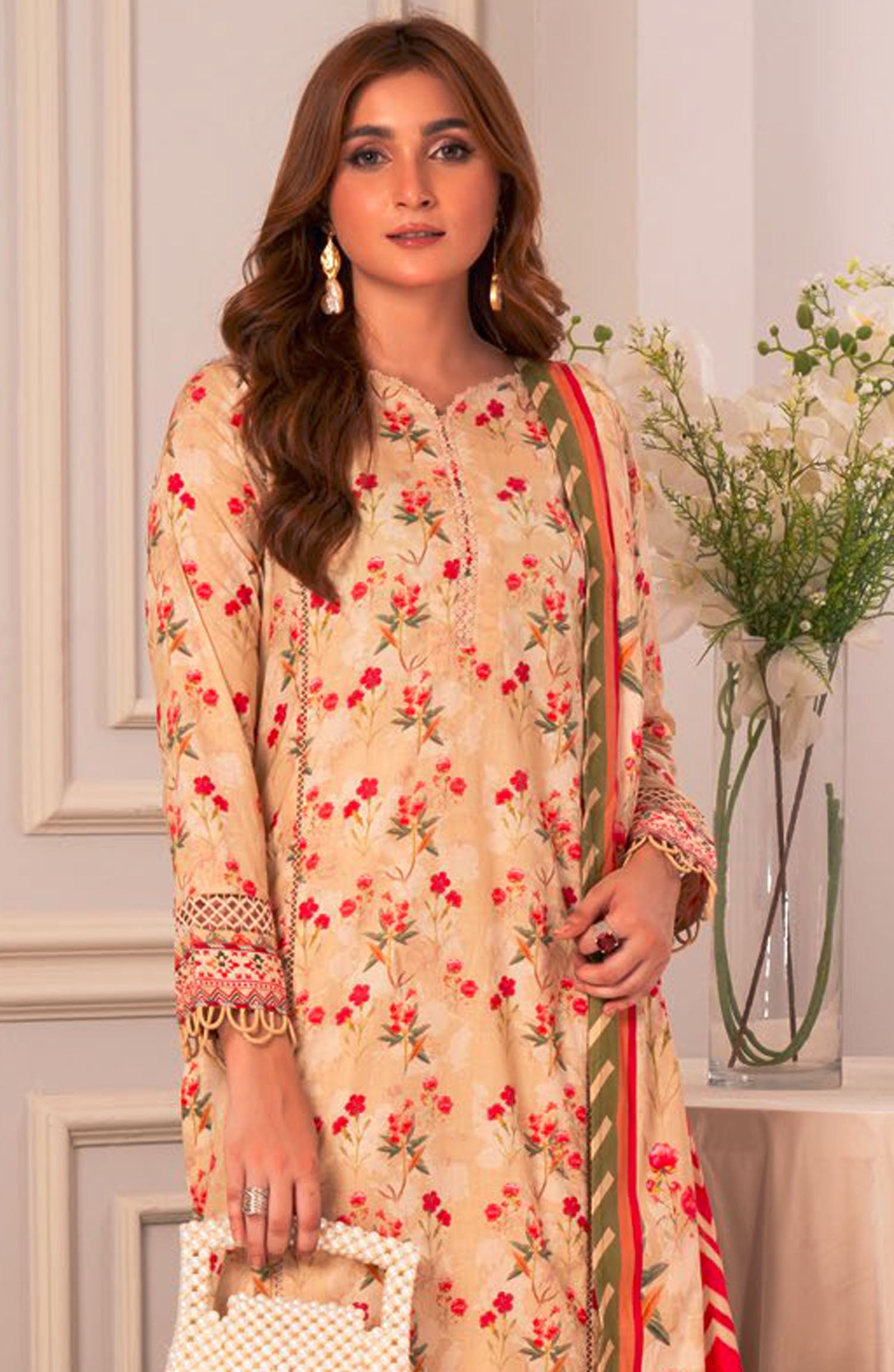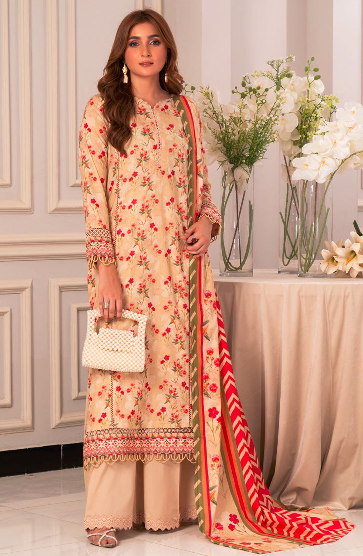 Home Lara by Johra Embroidered Lawn Unstitched 3 Piece Suit - JH-994 - JH25LPL - Cream - Summer Collection