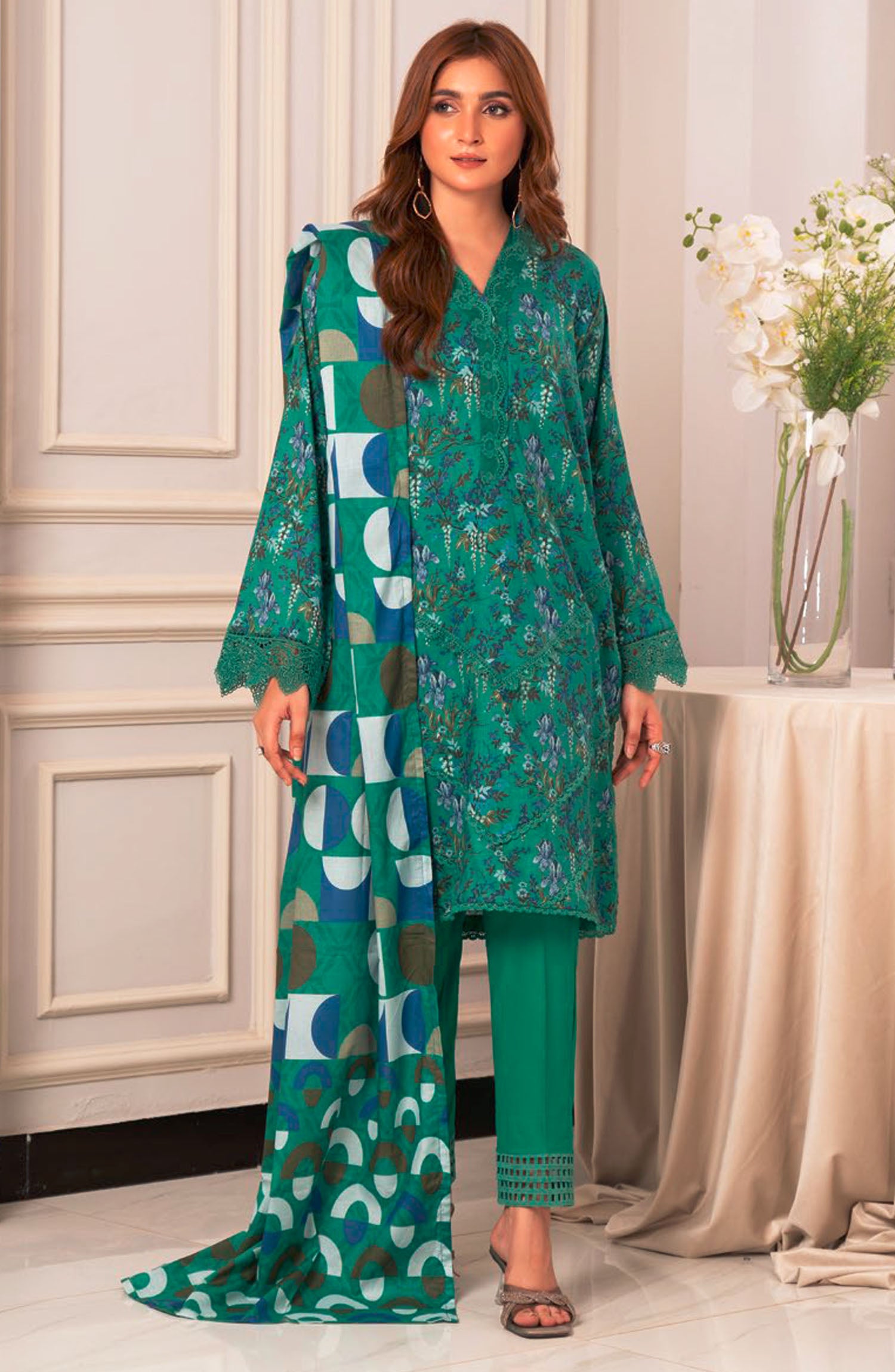 Home Lara by Johra Embroidered Lawn Unstitched 3 Piece Suit - JH-996 - JH25LPL - Sea Green - Summer Collection