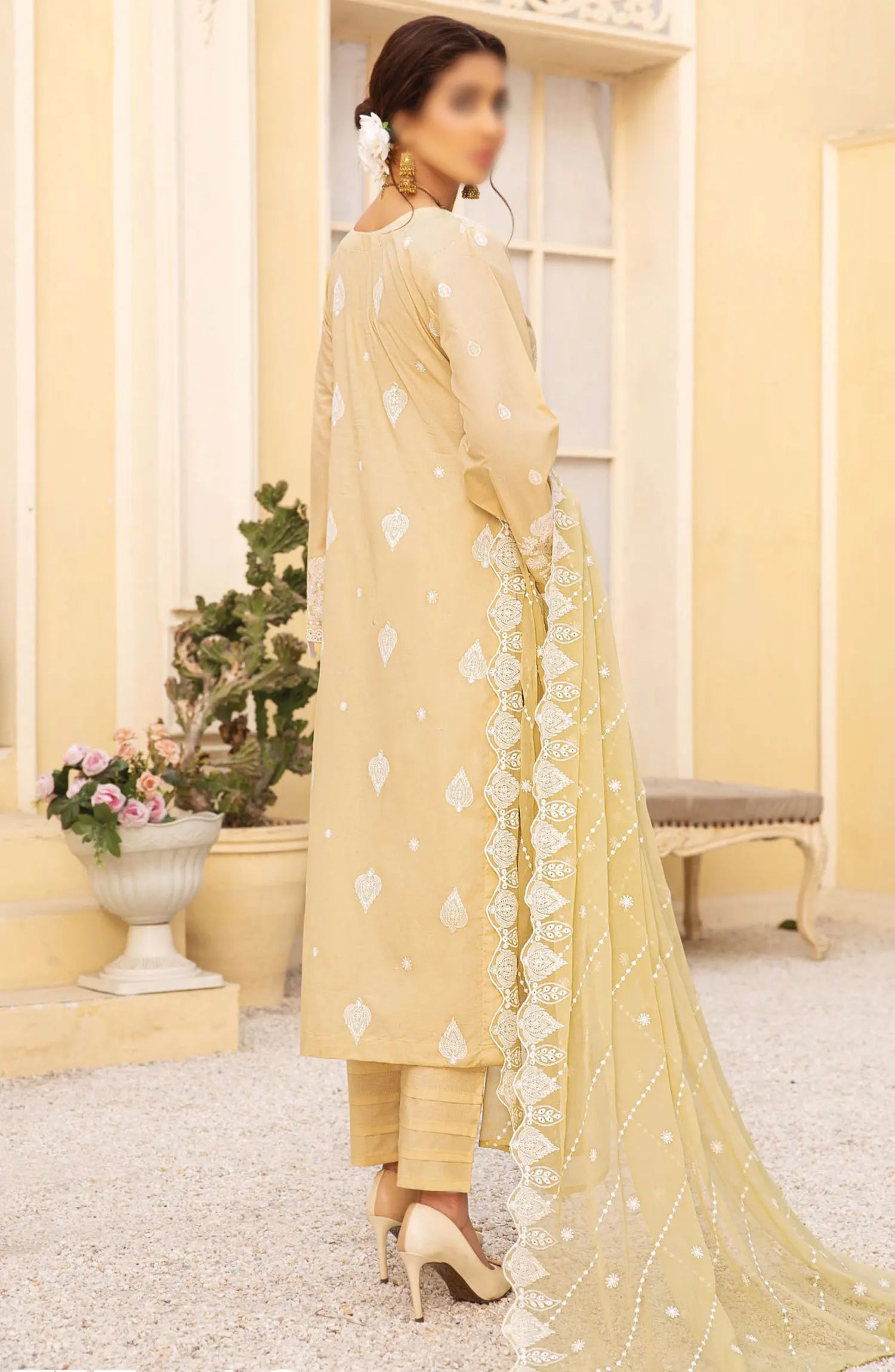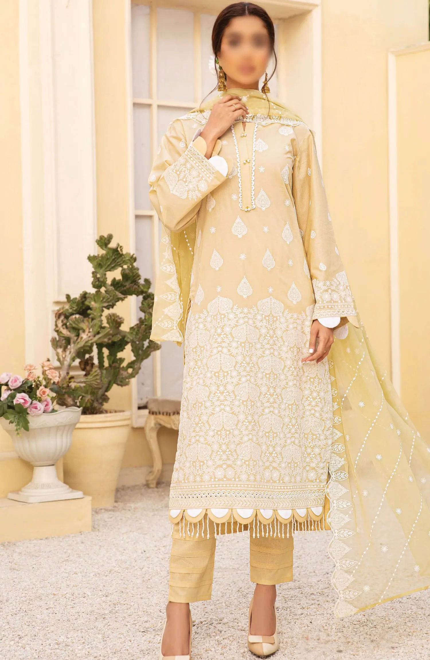 Shanzey Printed Cambric Stitched 3 Piece Suit - SHK-4903 - SHZ25CAM - Lemon - Girls Winter Collection