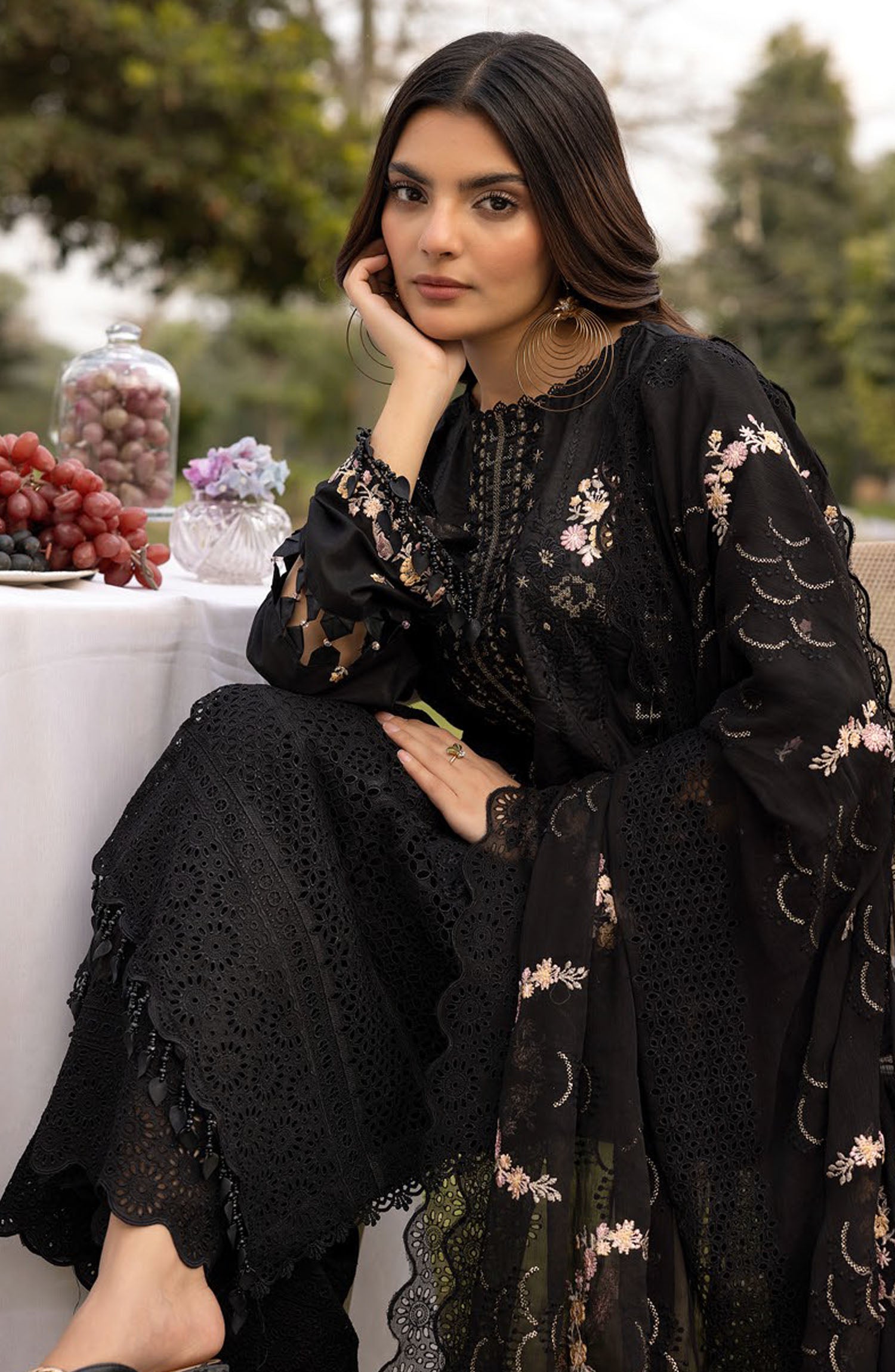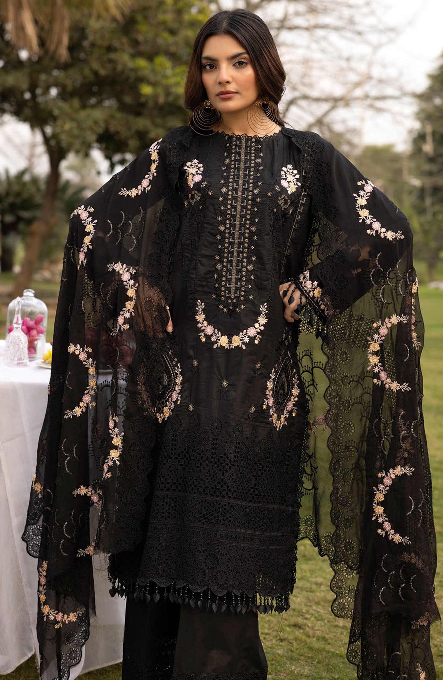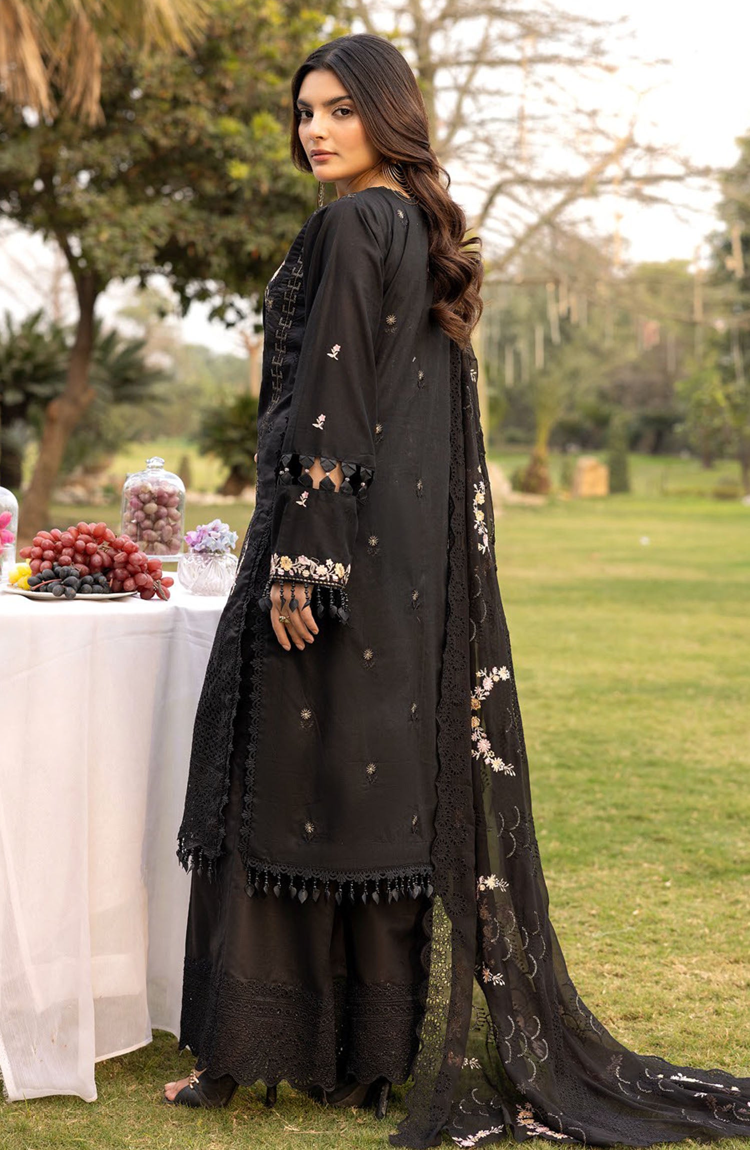 Lawnkari by Bunai Embroidered Lawn Unstitched 3 Piece Suit - D-02 - BUN25LK - Black - Summer Collection
