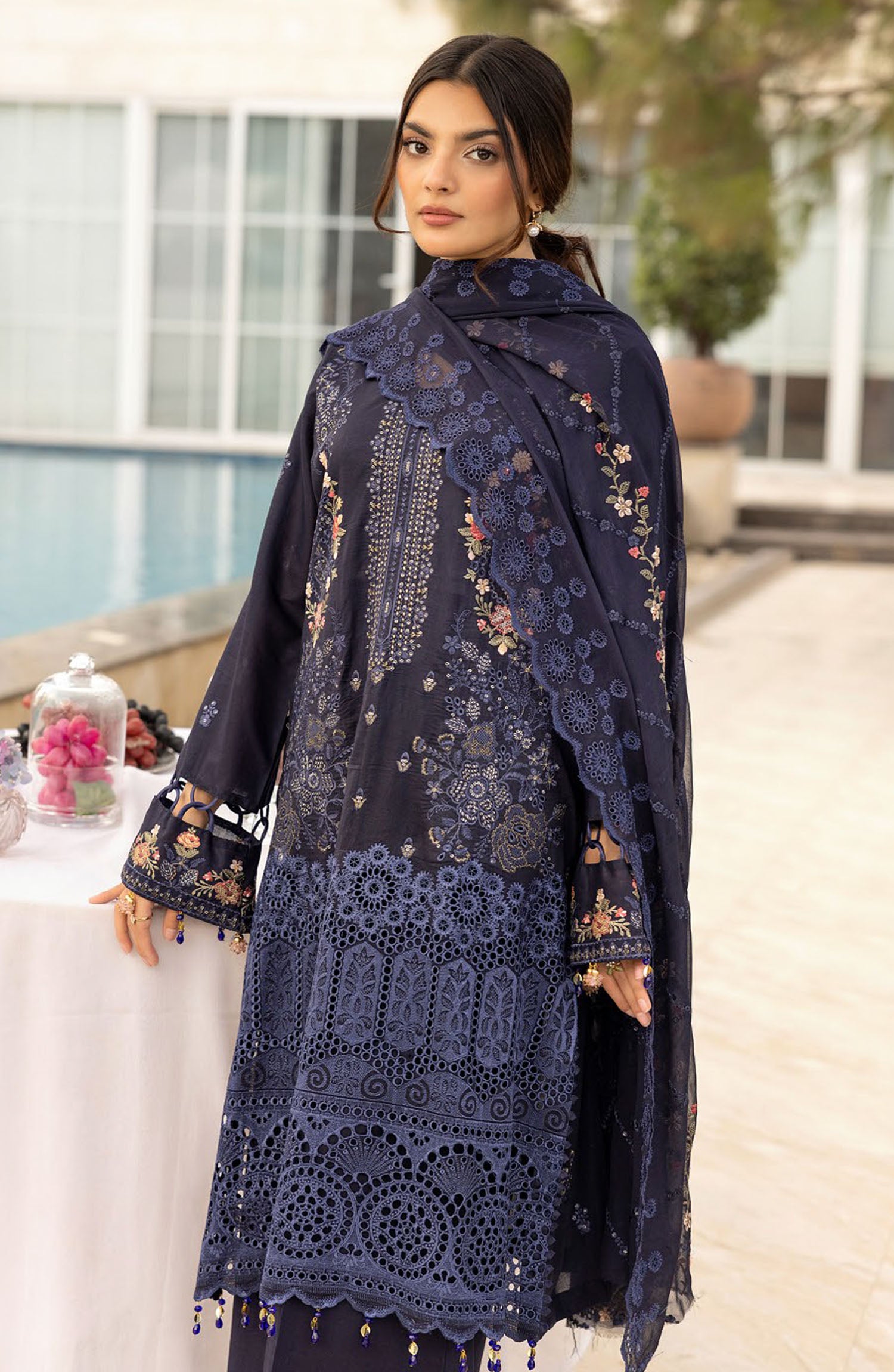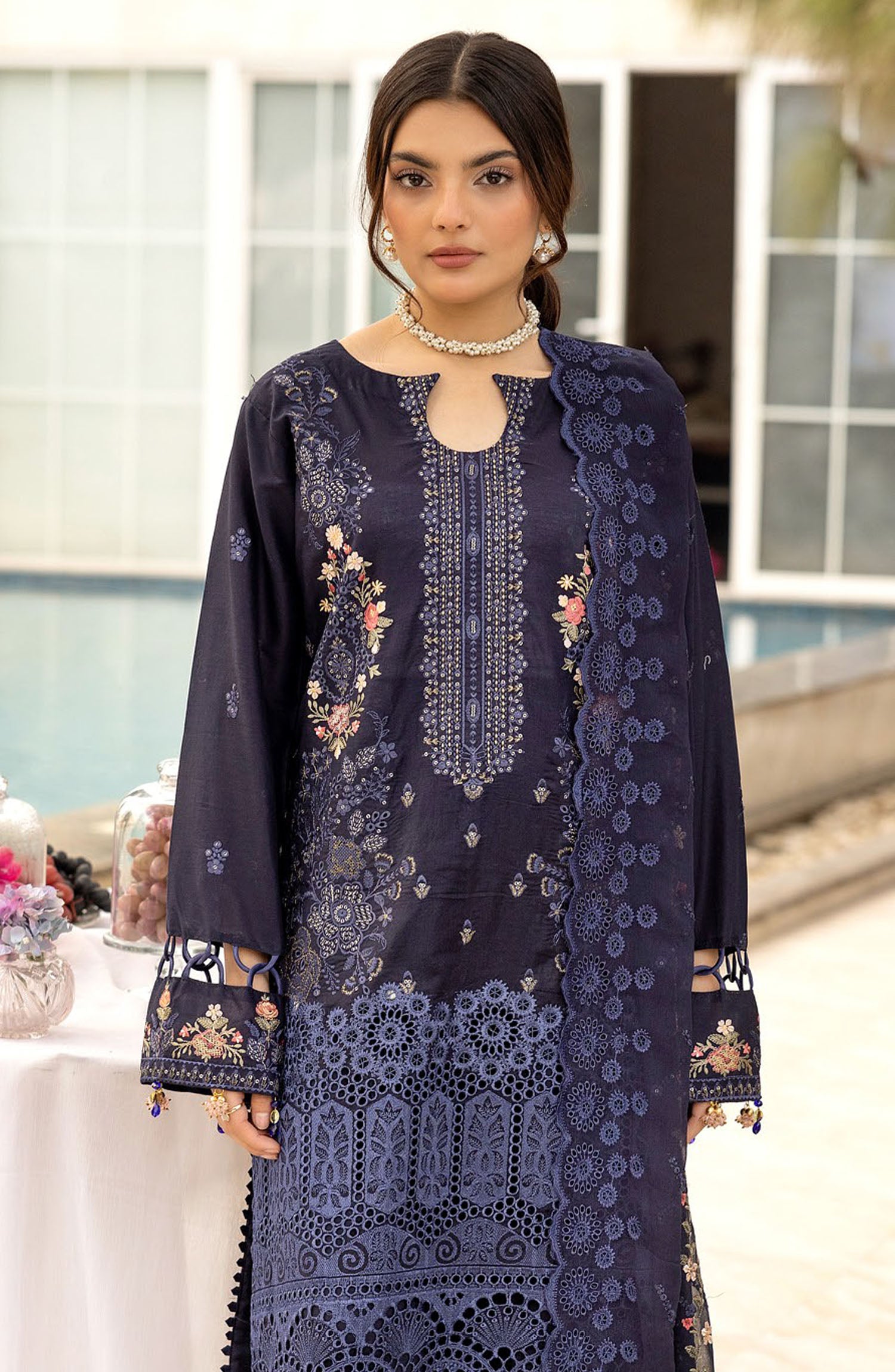 Lawnkari by Bunai Embroidered Lawn Unstitched 3 Piece Suit - D-05 - BUN25LK - Blue - Summer Collection