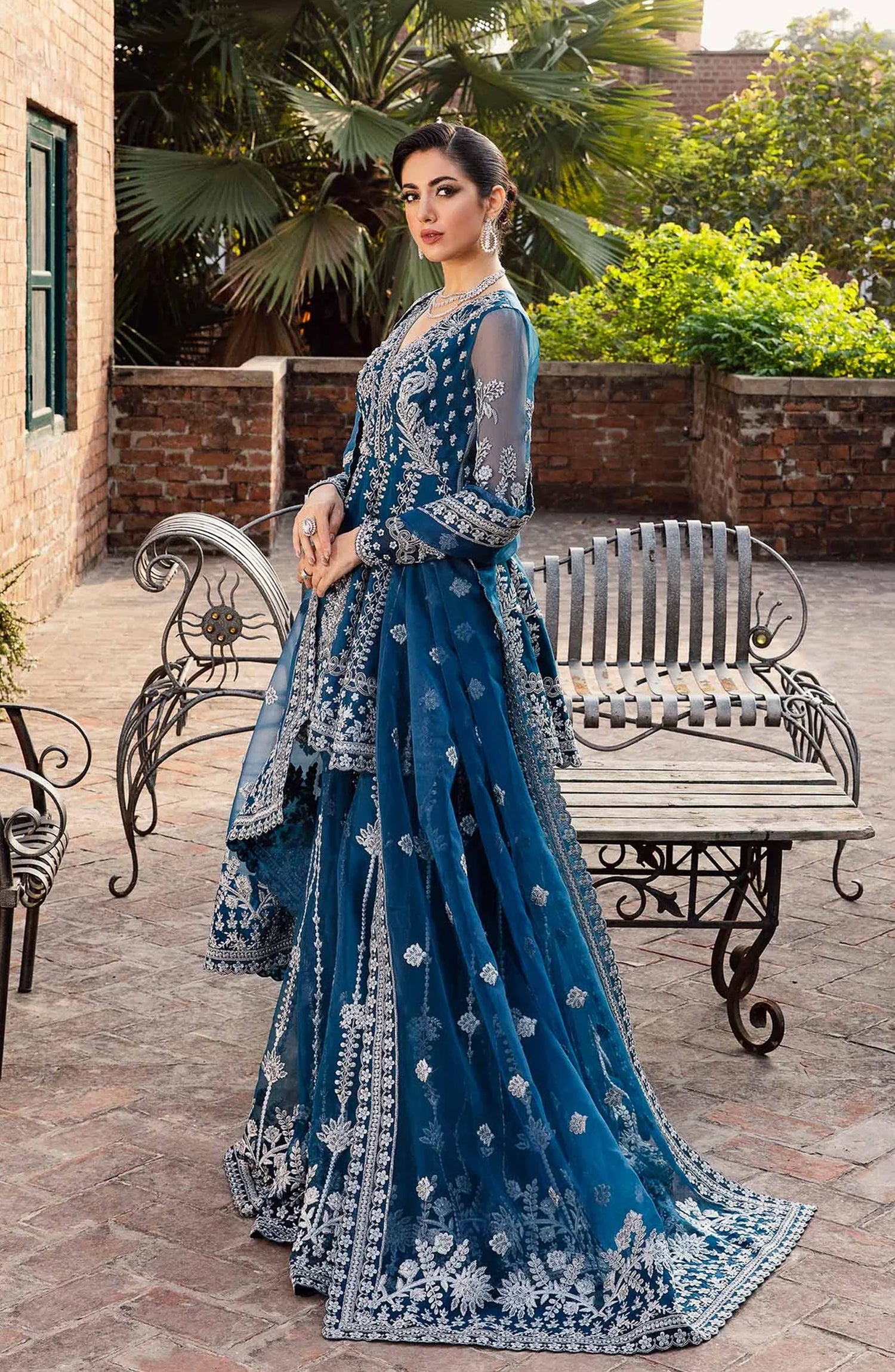 Layali by Akbar Aslam Embroidered Organza Unstitched 3 Piece Suit - Nayara - AKA25LYL - Blue - Wedding Collection