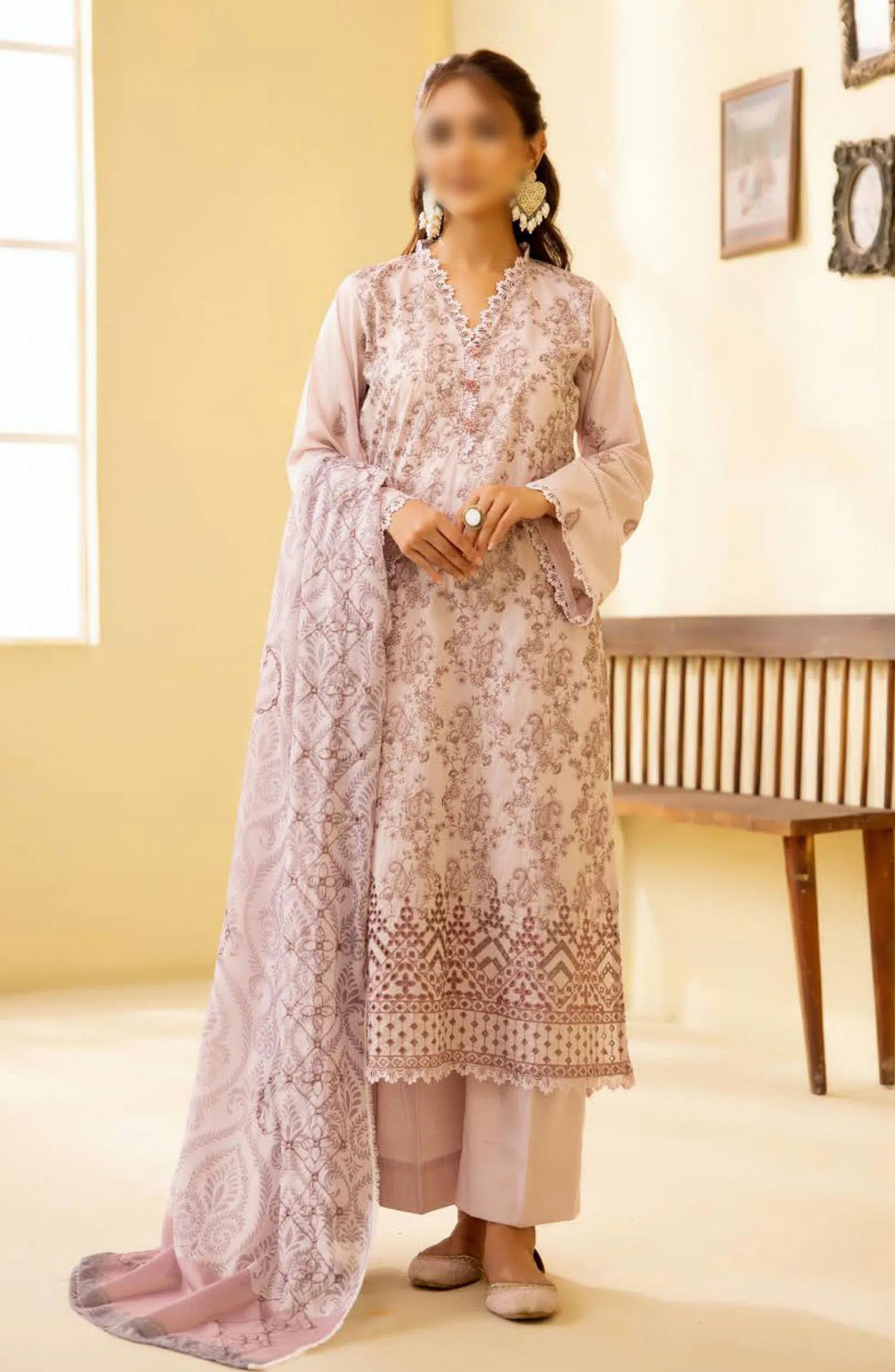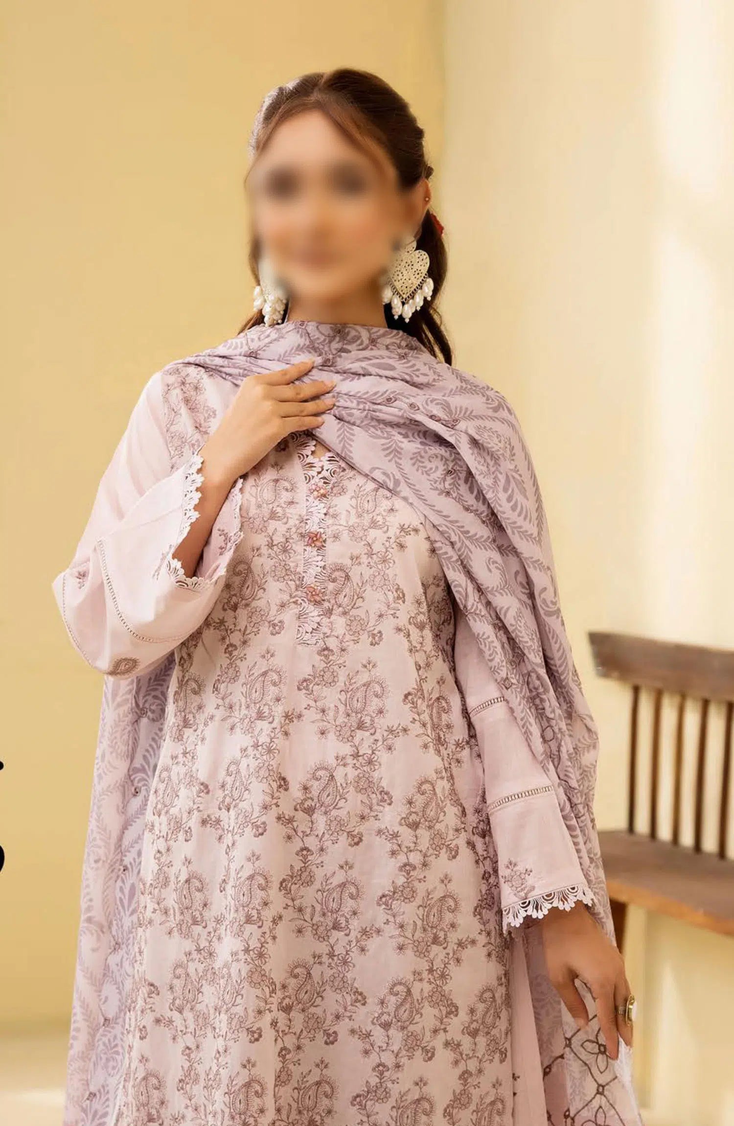 Layla Premium Embroidered Lawn Collection 2024 has been styled in the image for photography and illustrative purposes.