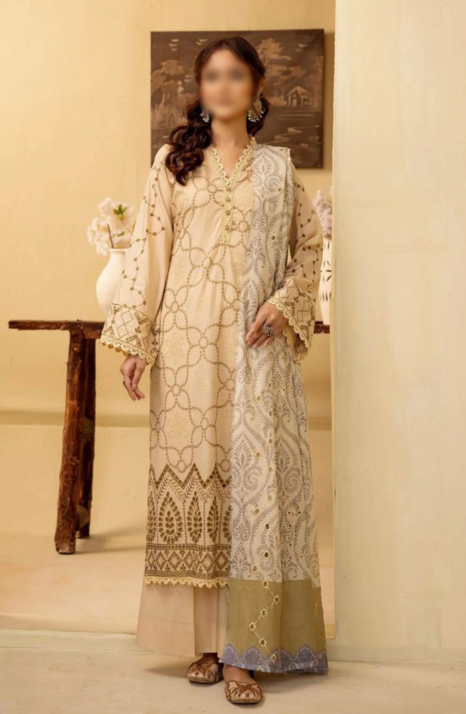 3 Piece Embroidered Lawn suit with Voile Dupatta .
