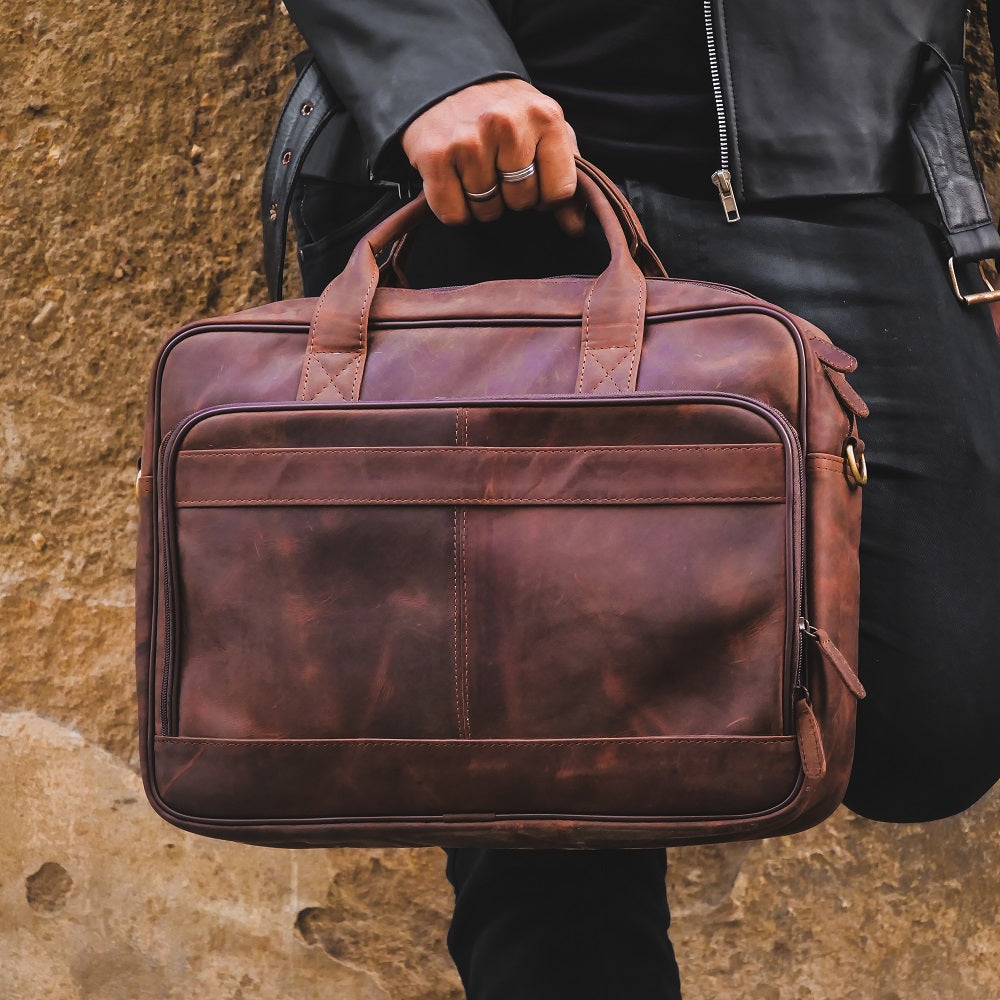 Do you need something to organize your office essentials and carry with class? then look no further than our Everyday Companion Leather Laptop Bag with 2 color tone.