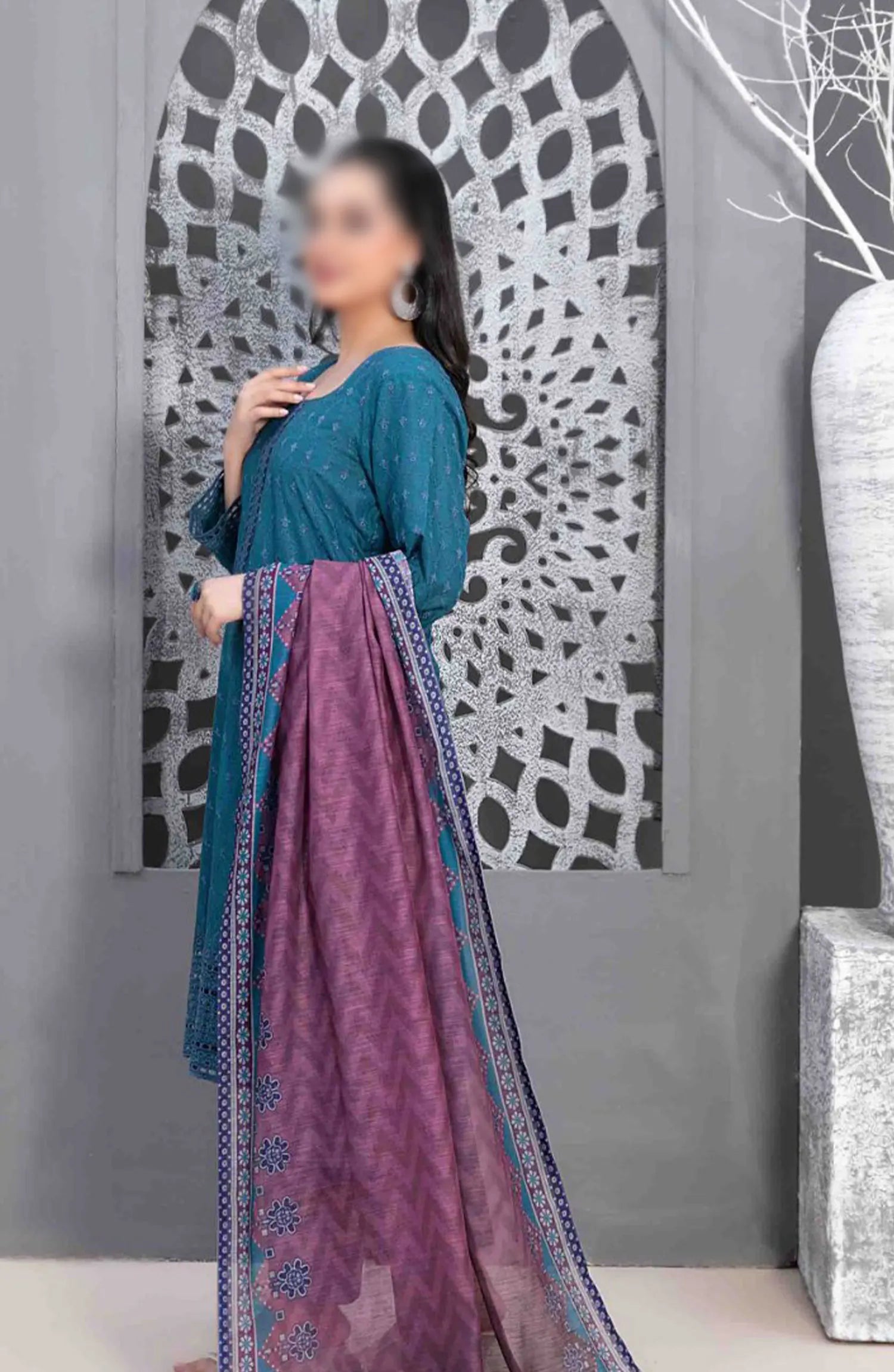 Rua by Casual Lite Embroidered Premium Linen Stitched 3 Piece Suit - D-07 Teal Mirage - CL25RU - Teal - Winter Collection