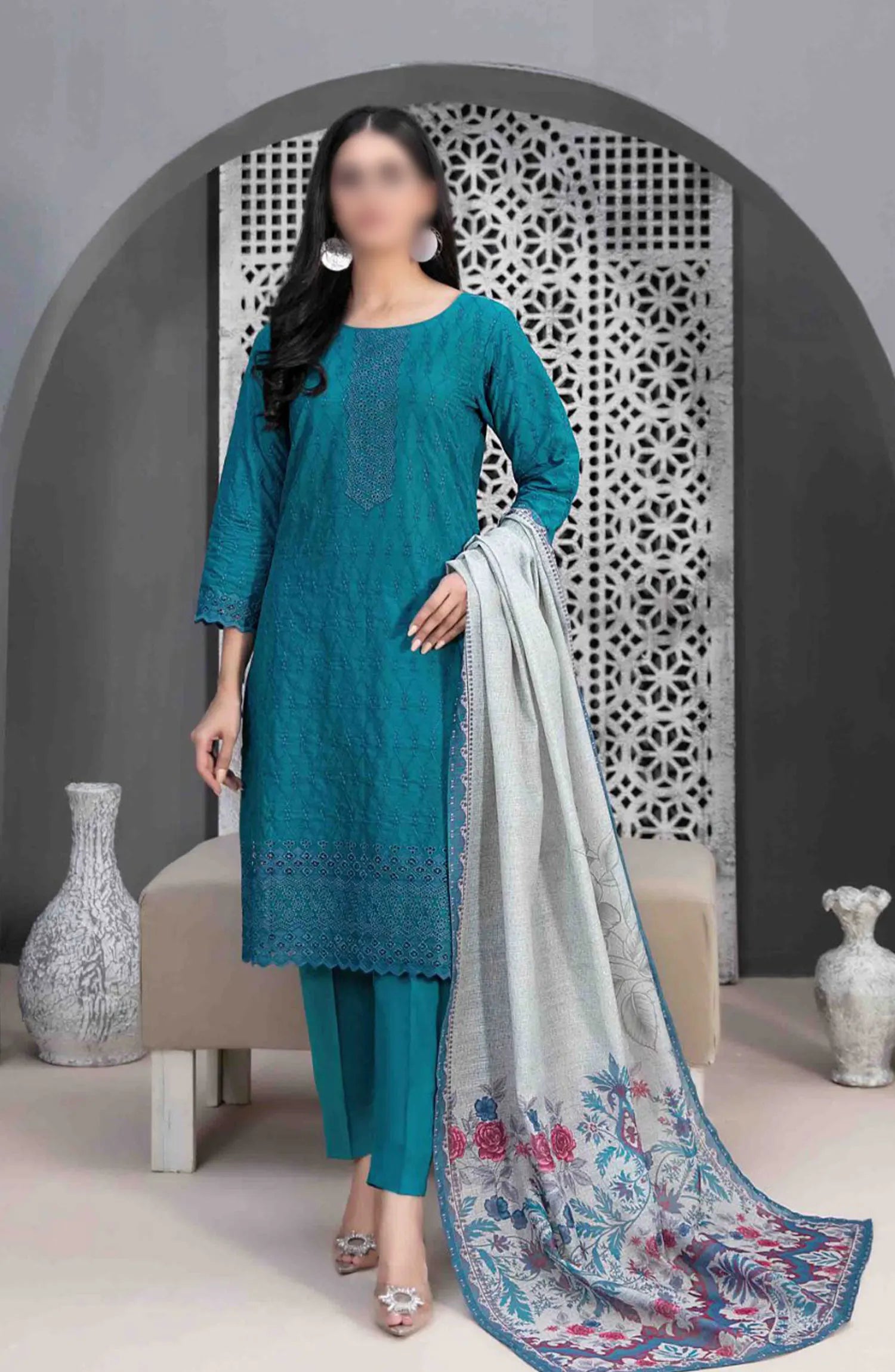 Rua by Casual Lite Embroidered Premium Linen Stitched 3 Piece Suit - D-07 Teal Mirage - CL25RU - Teal - Winter Collection