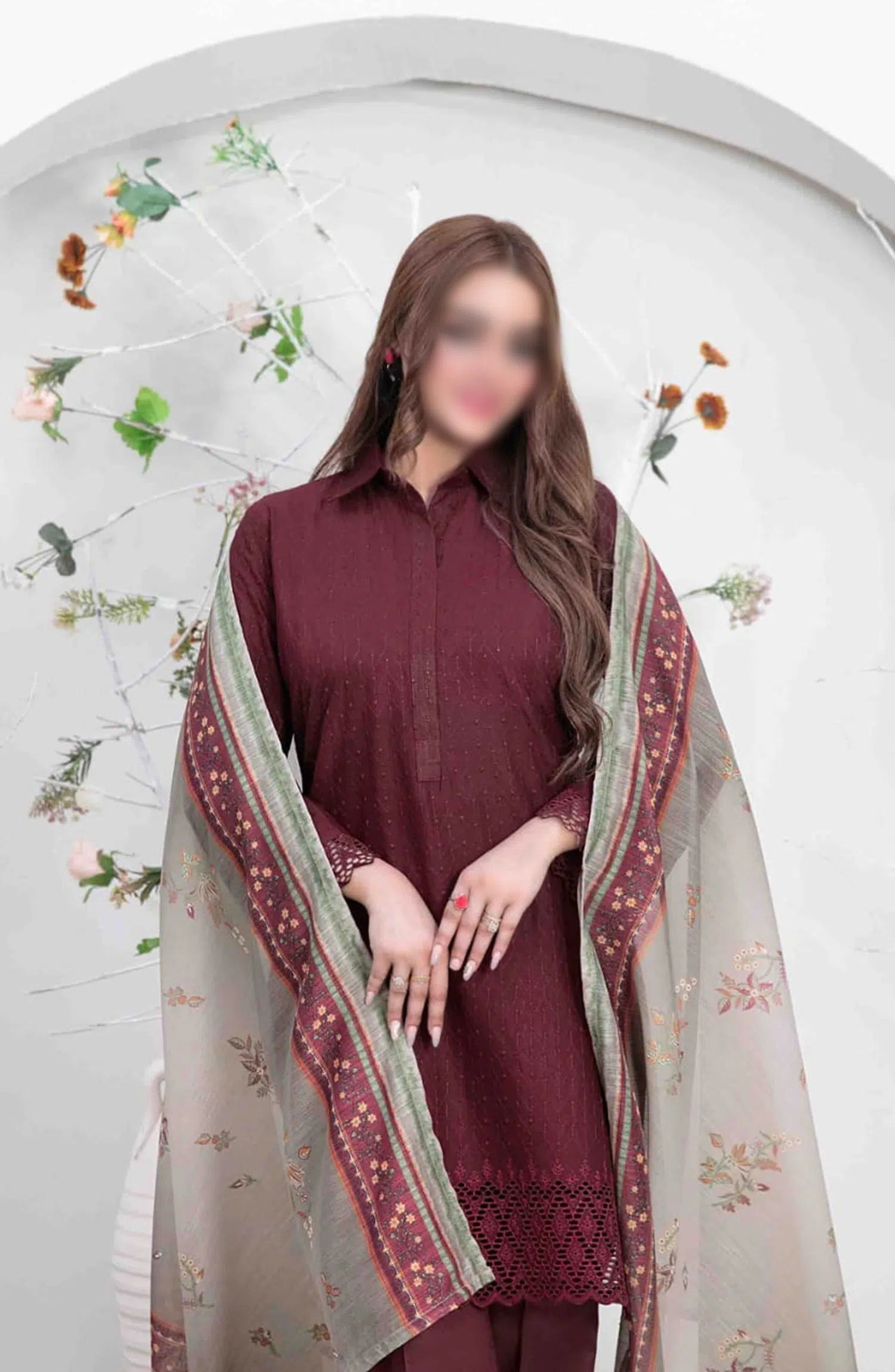Leeba - Schiffli Embroidered Lawn Collection Vol II 2024 has been styled in the image for photography and illustrative purposes.