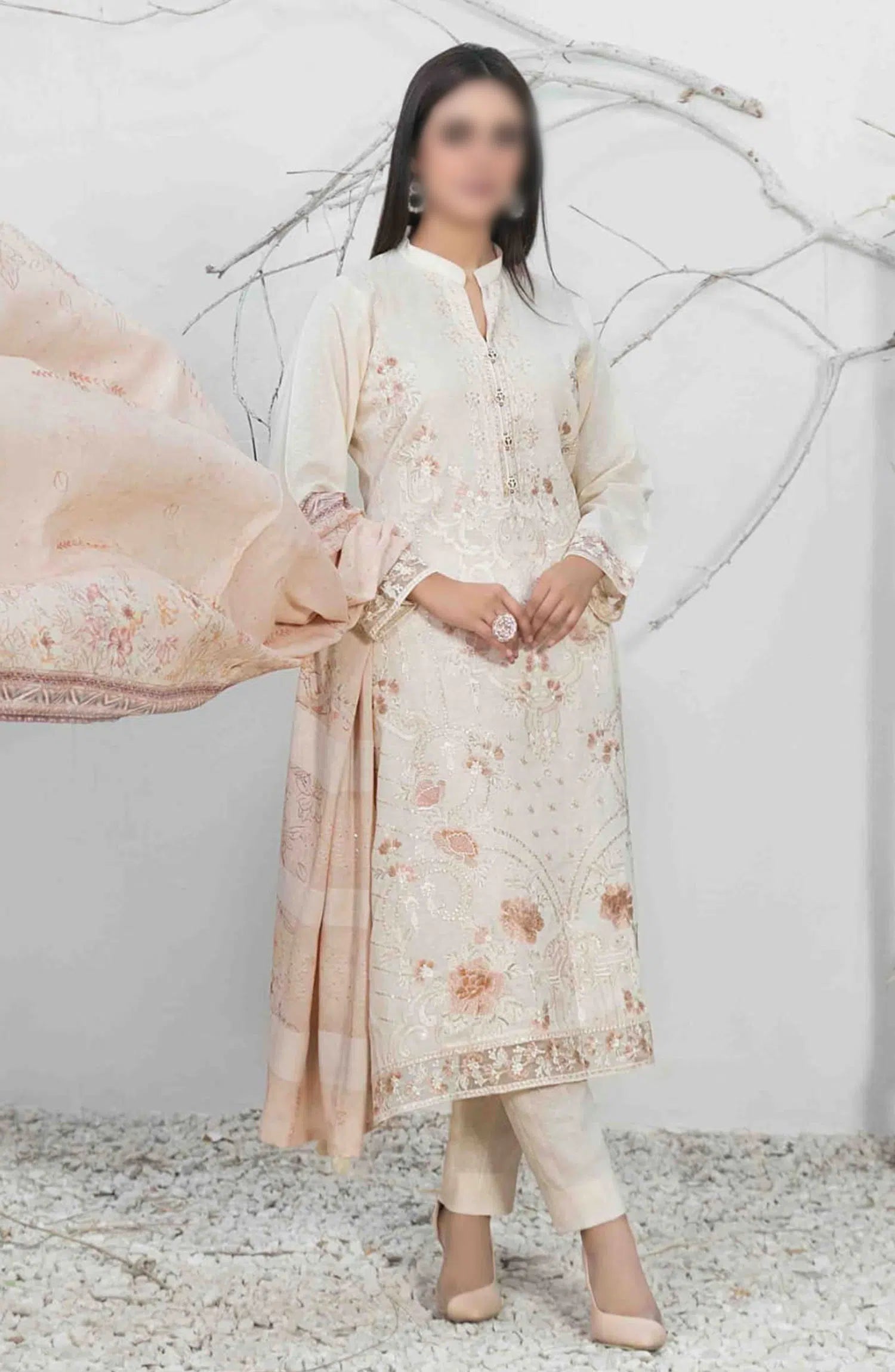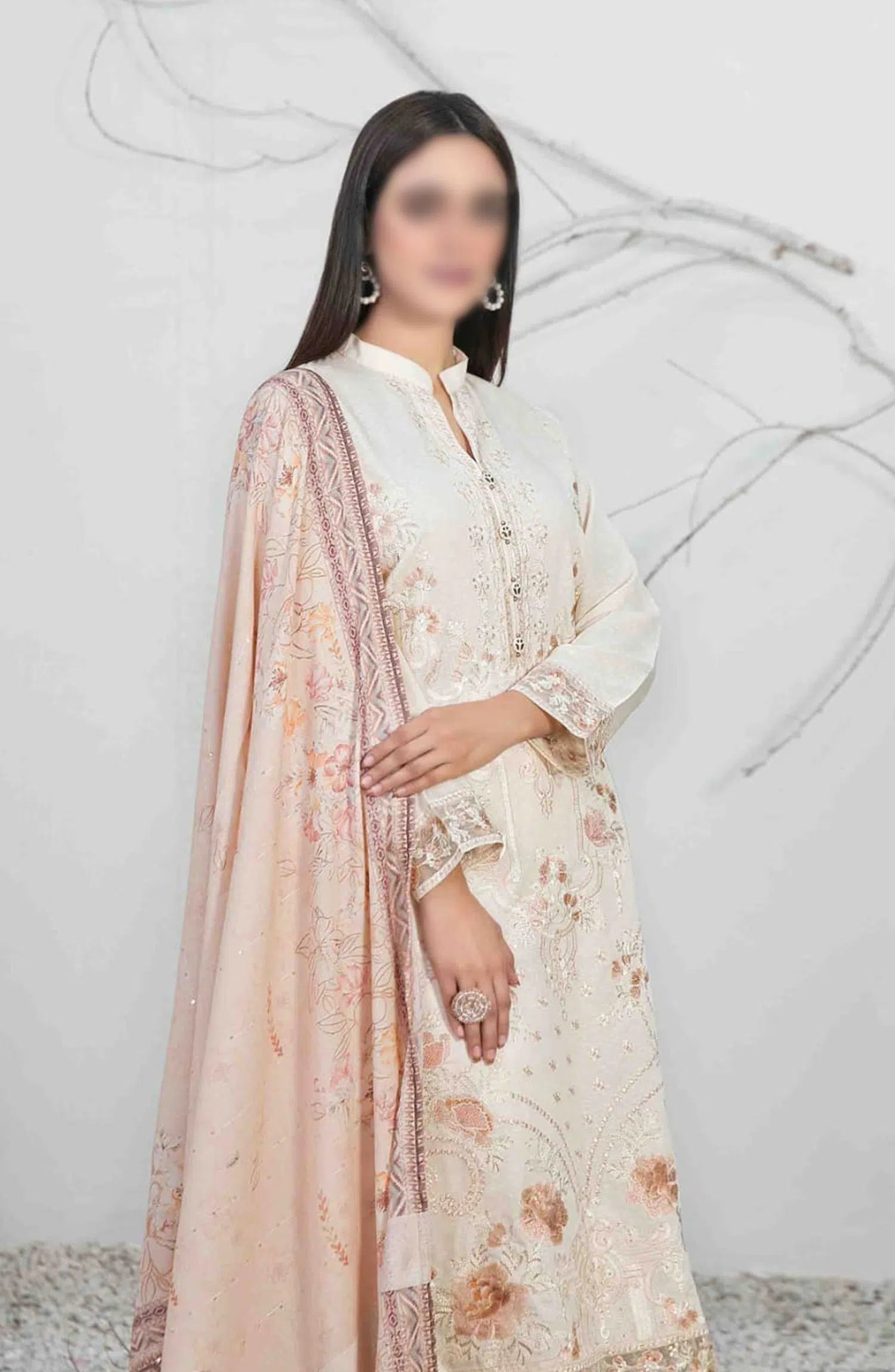 Sadabahar Luxury Embroidered Dhanak Stitched 3 Piece Suit - Design-04 - SBD25LXD - Fawn - Winter Collection