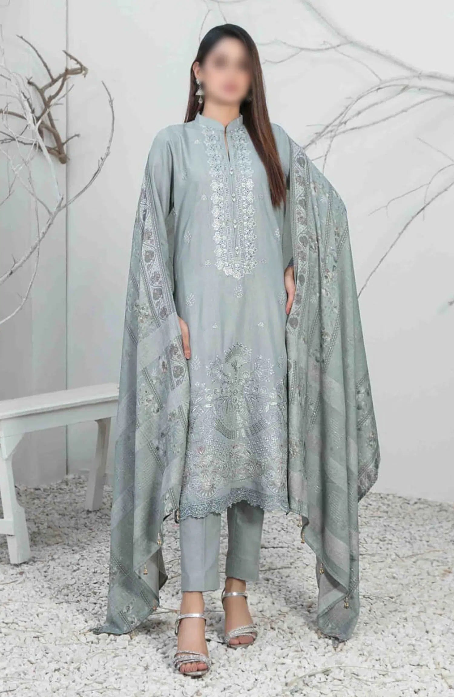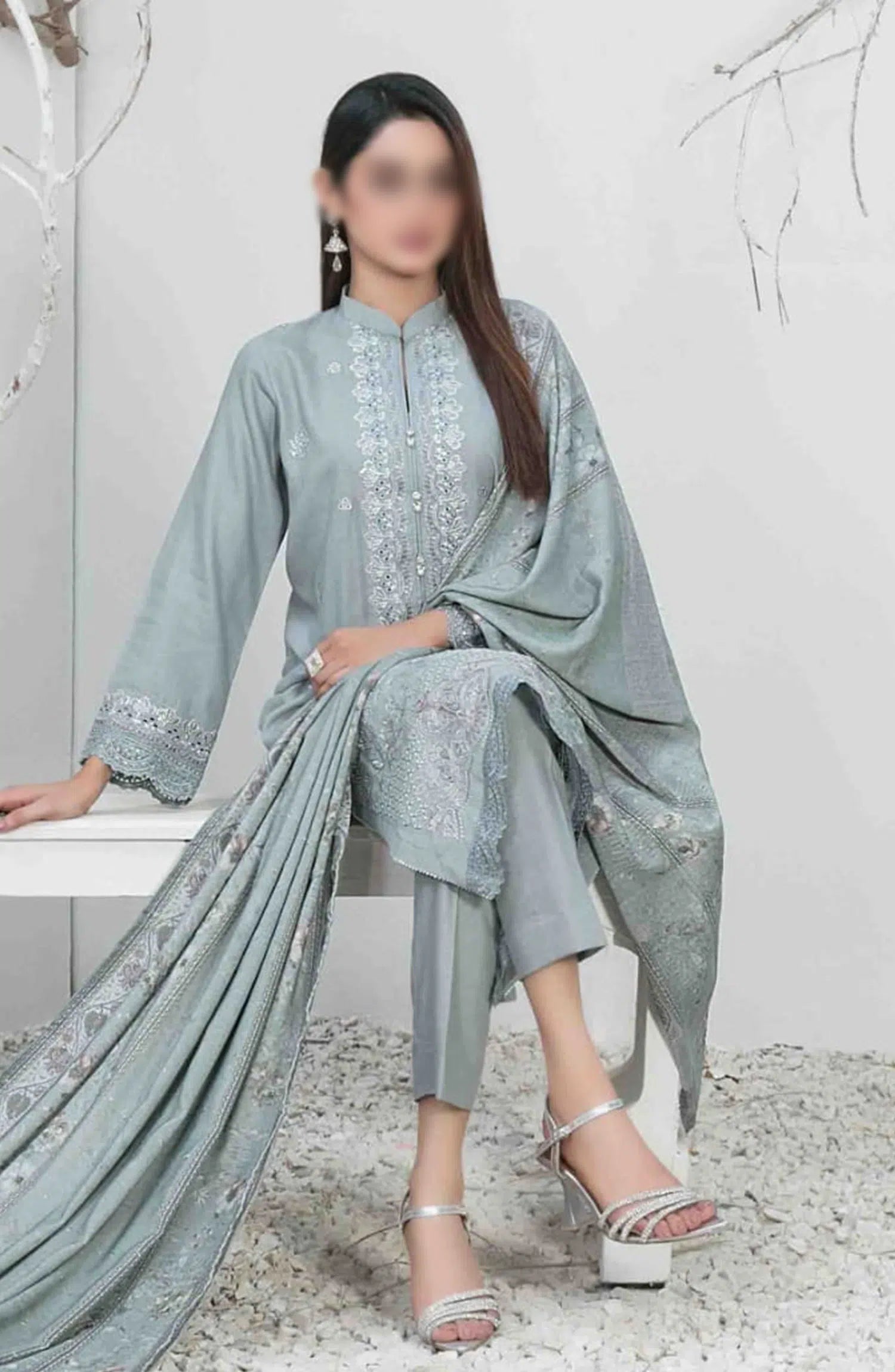 Sadabahar Printed Khaddar Stitched 3 Piece Suit - Design-04 - SBD25SHIMR - Teal - Winter Collection