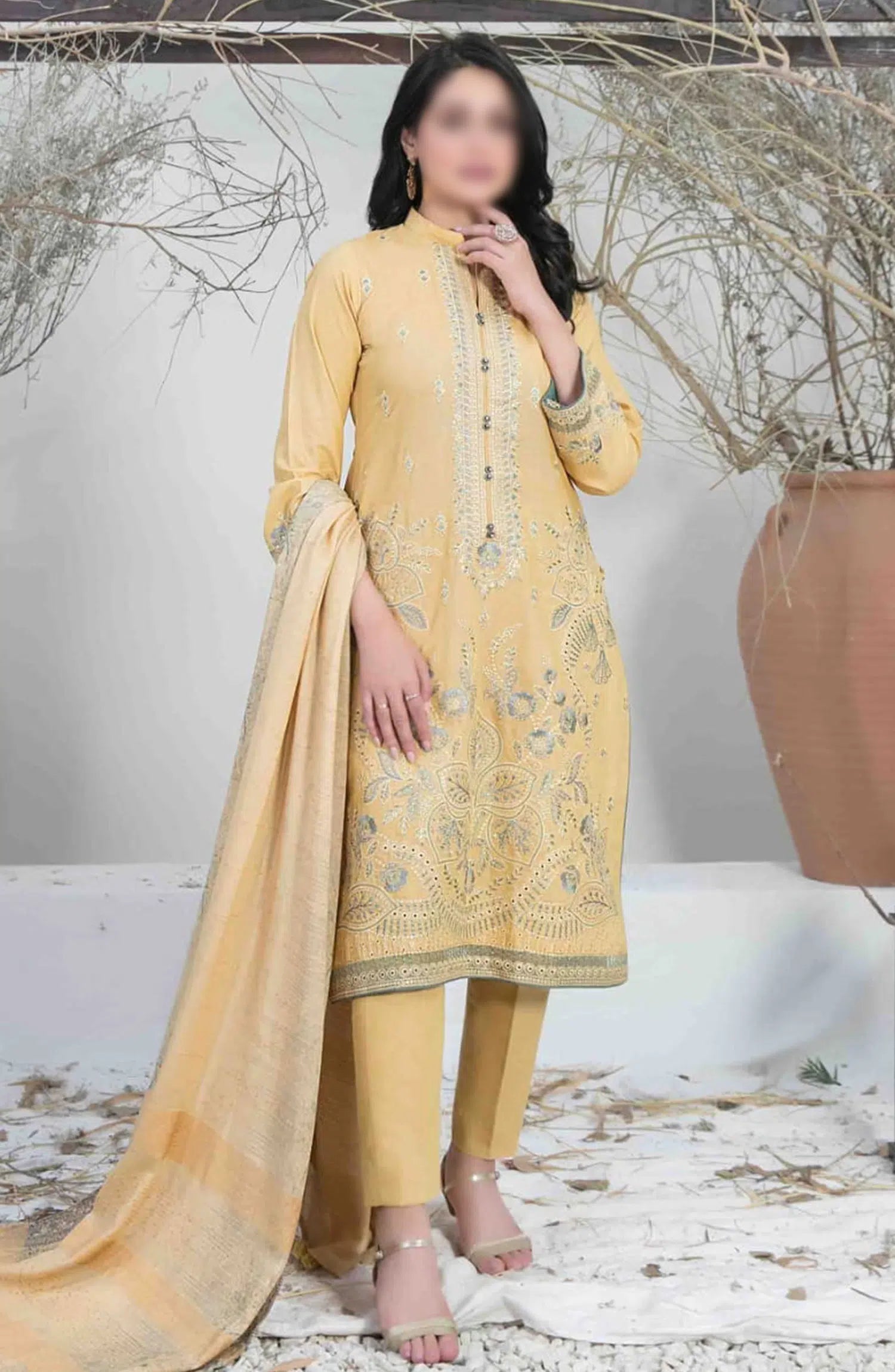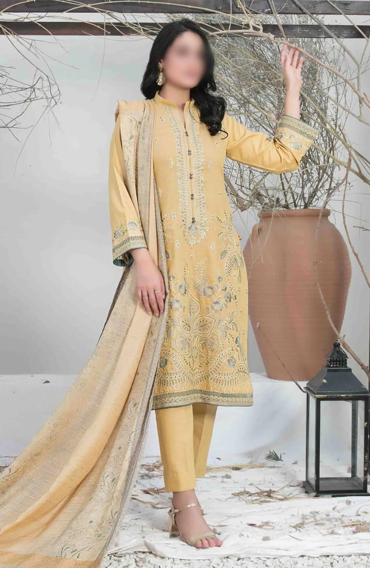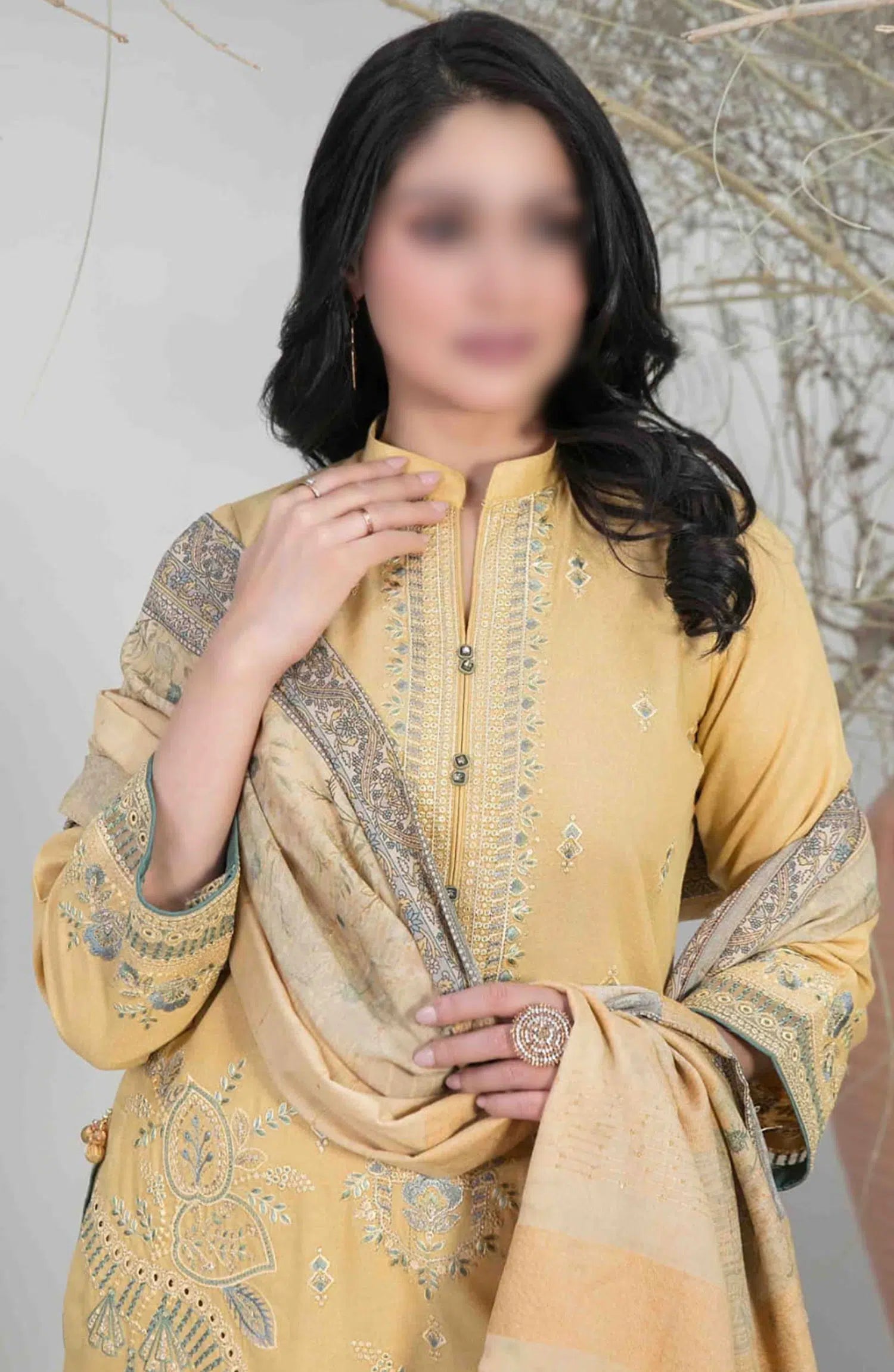 Sadabahar Luxury Embroidered Dhanak Stitched 3 Piece Suit - Design-01 - SBD25LXD - Mustard - Winter Collection