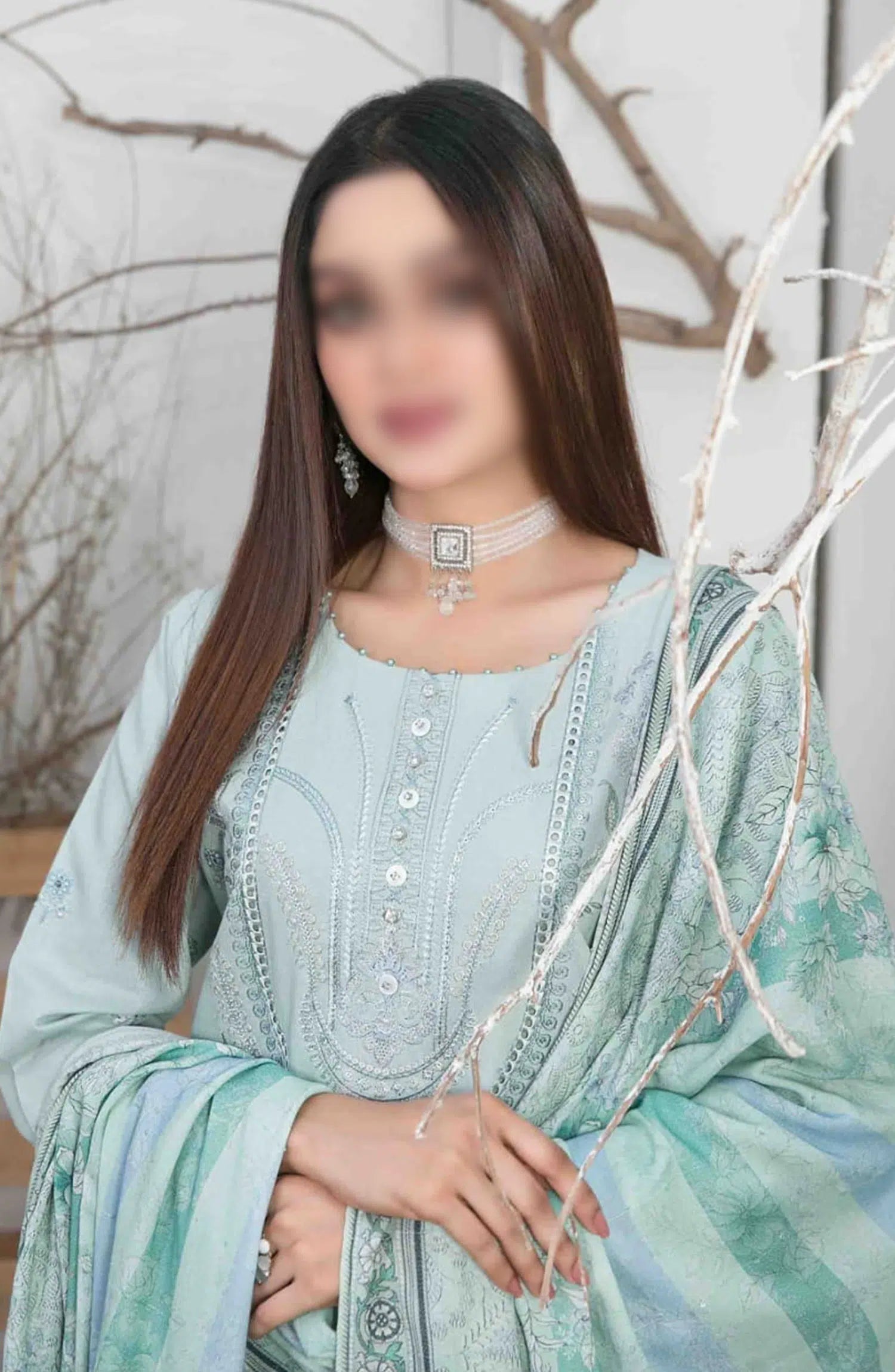 Leesha Embroidered Chawal Karandi Collection has been styled in the image for photography and illustrative purposes.