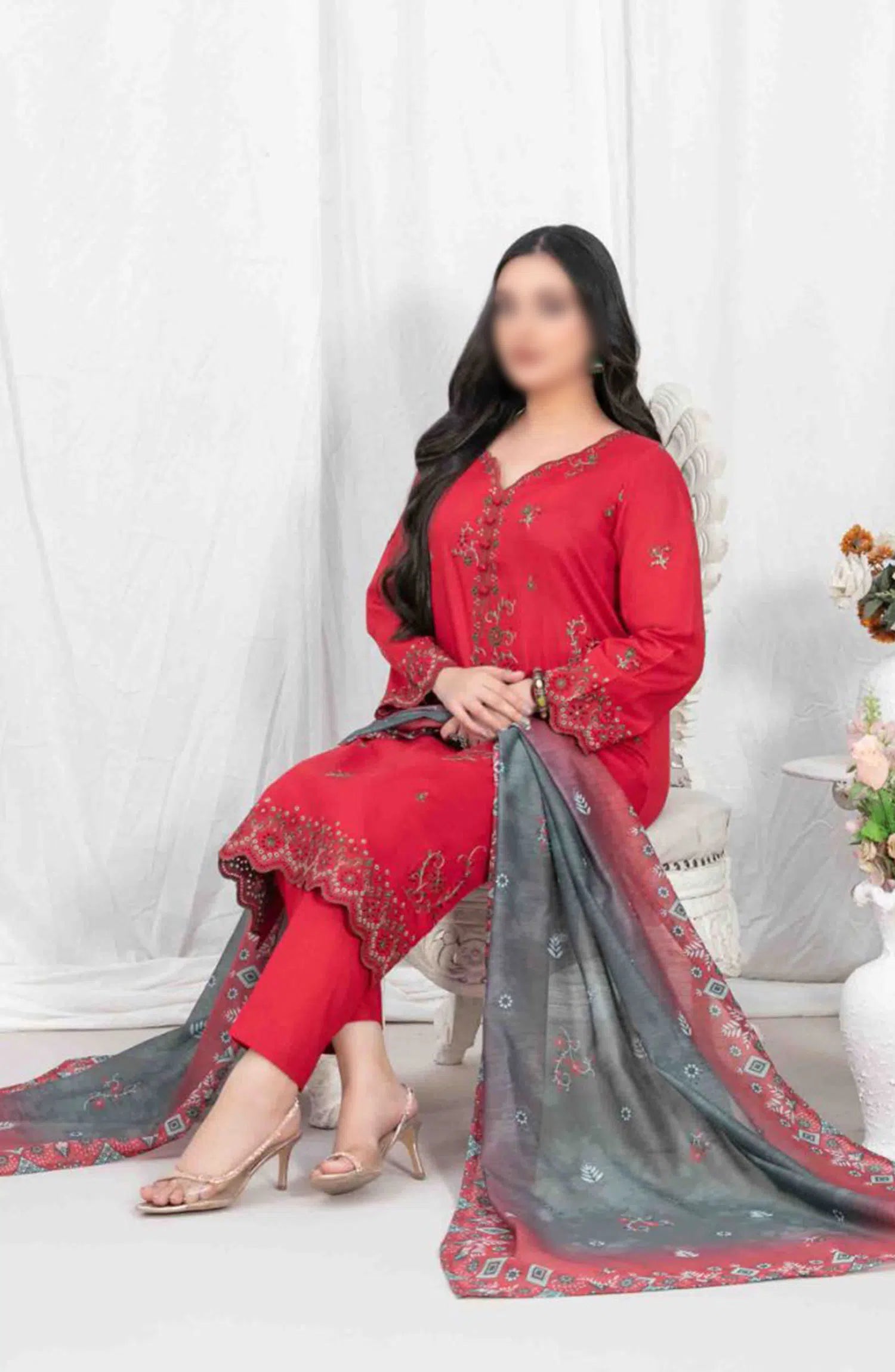 Lekeesha Stitched Fancy Embroidered Lawn Collection has been styled in the image for photography and illustrative purposes.