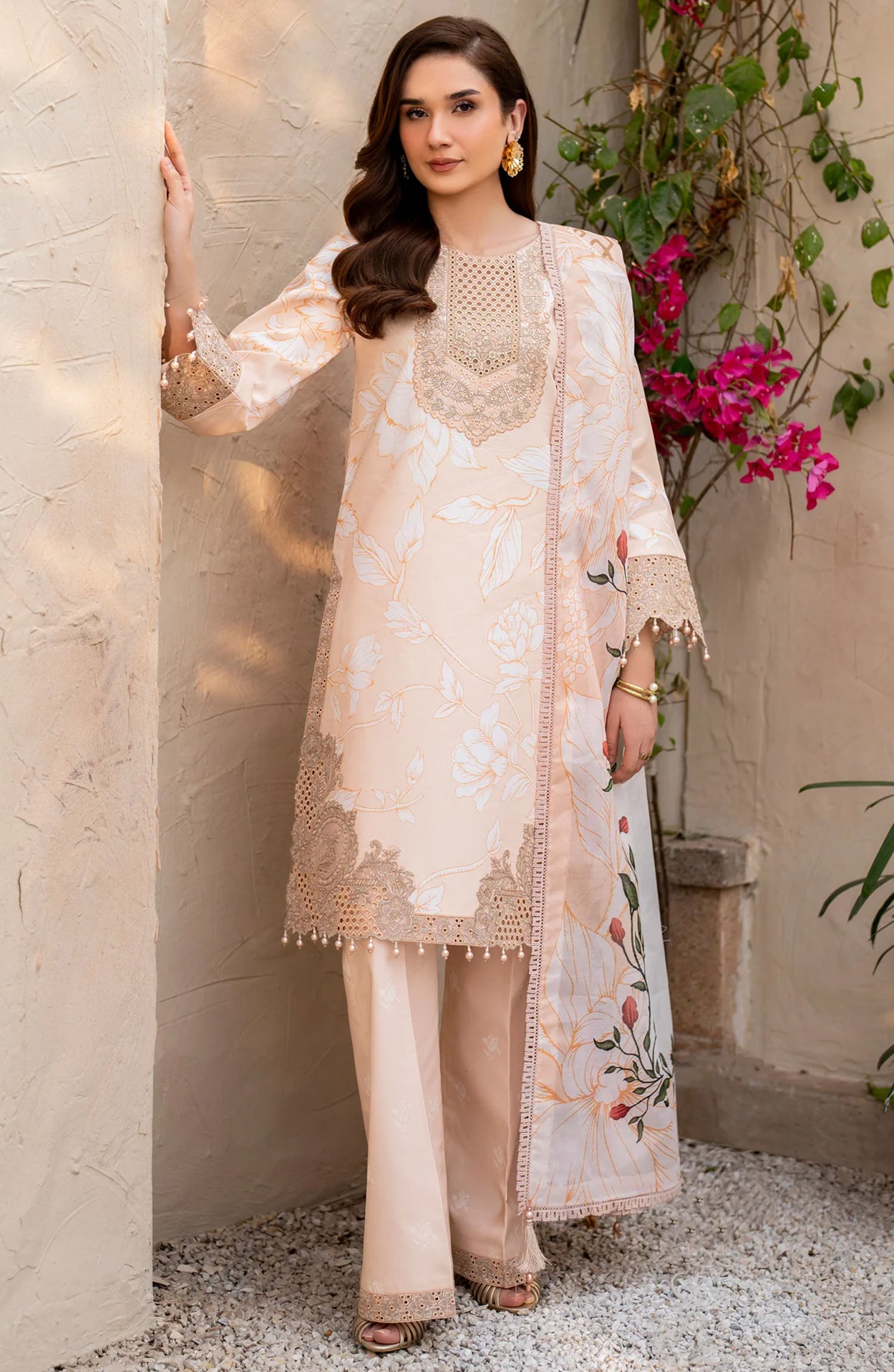 The standard style comes as a long-sleeved kameez with dupatta and trouser/shawlar.
