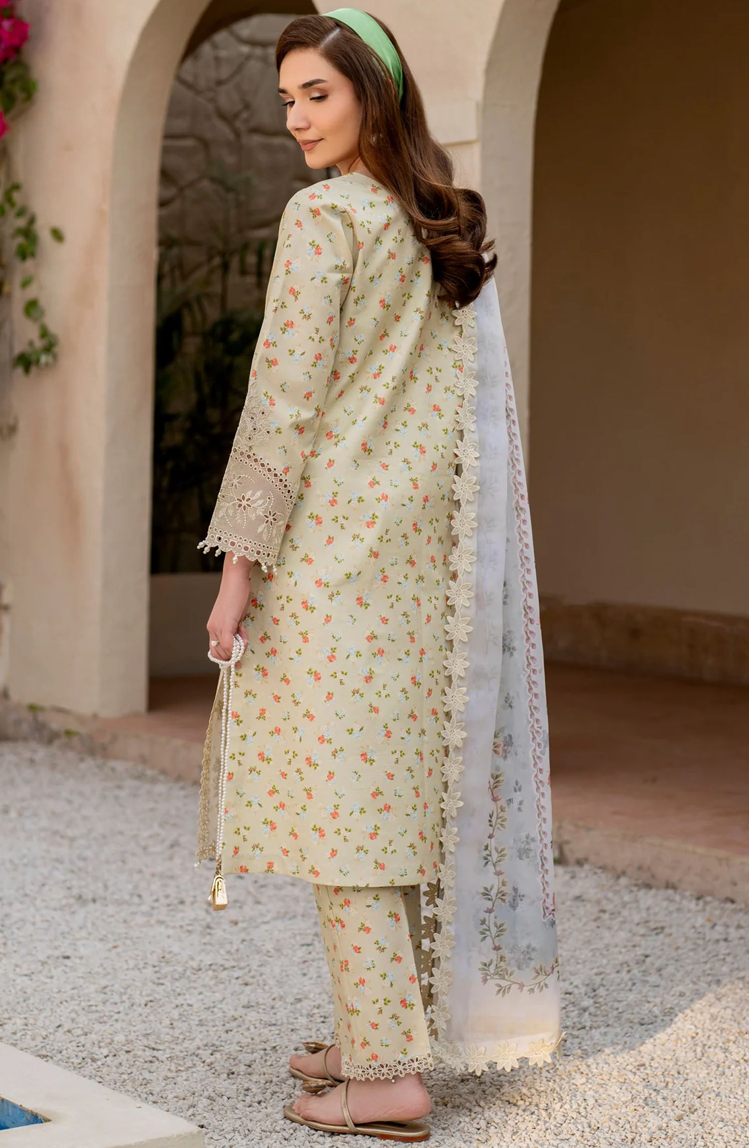 The standard style comes as a long-sleeved kameez with dupatta and trouser/shawlar.