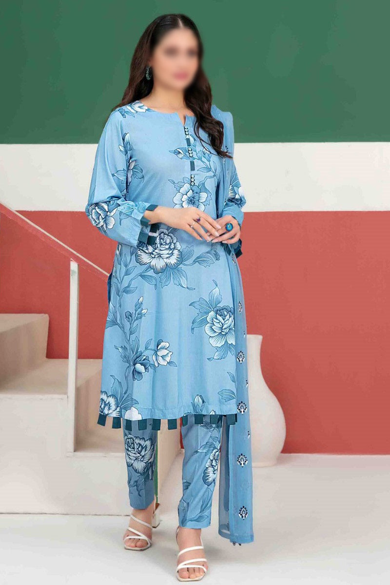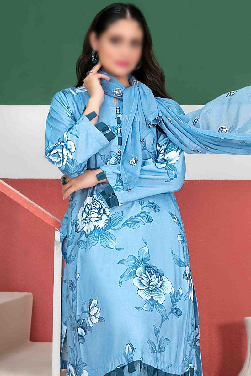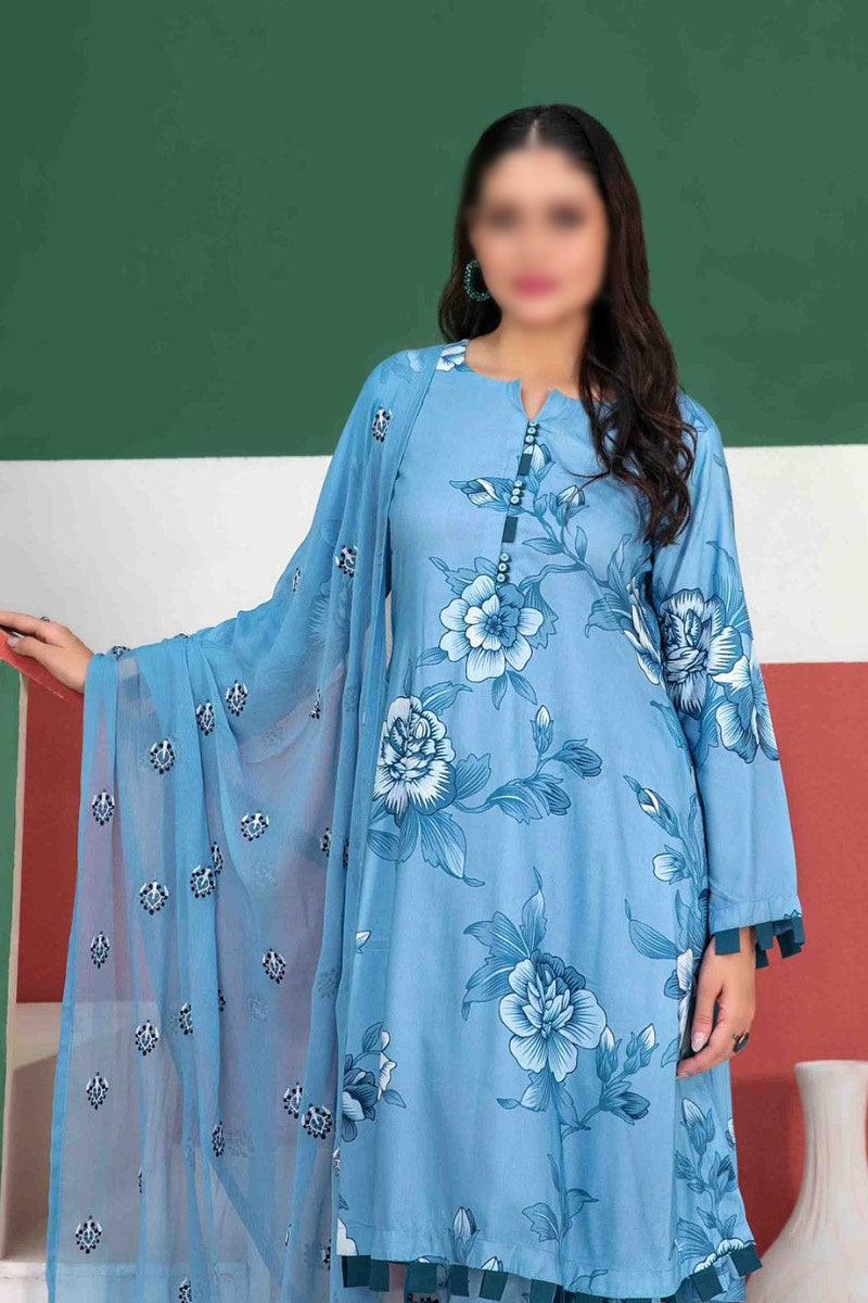 LIDA VOL I Digital Printed Staple Embroidered Chiffon Dupatta Collection 2023 has been styled in the image for photography and illustrative purposes.
