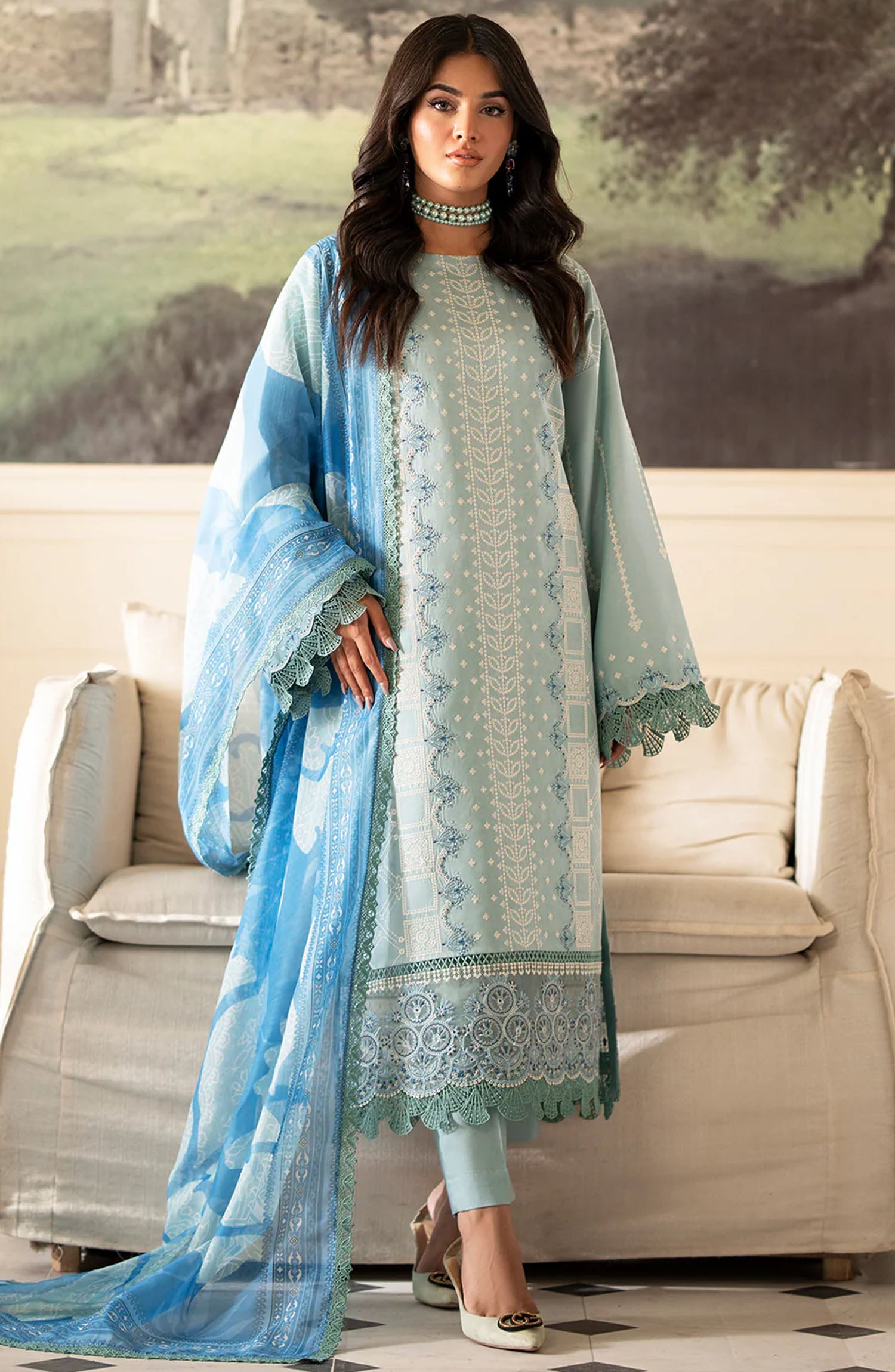 Mushq Darlings Wedding Embroidered Net Unstitched 3 Piece Suit - Kiara - MQ25DRW - Ice Blue - Festive Collection