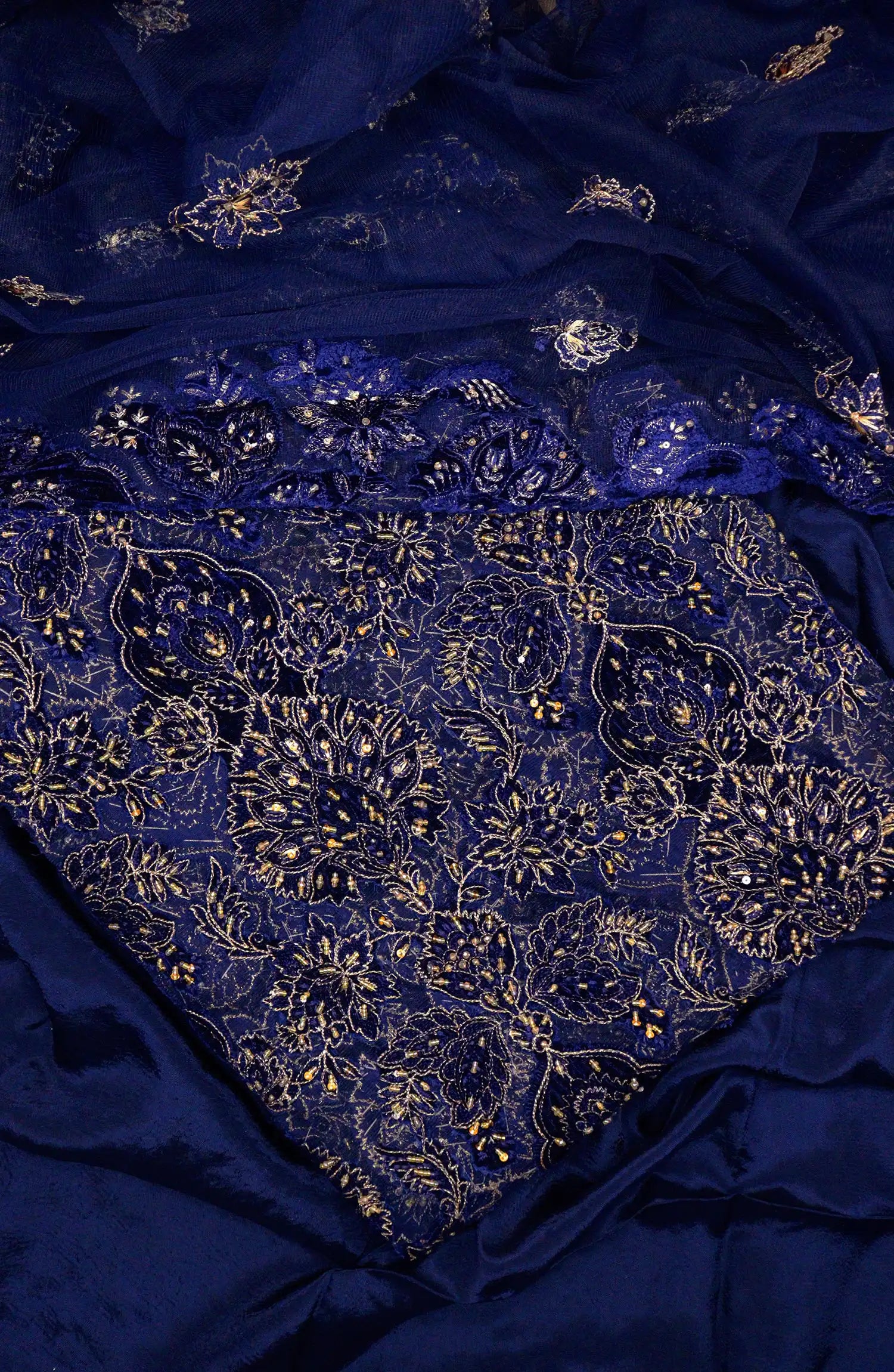 Exclusive 9000 micron Velvet and Handwork Embroidered net fabric for shirt